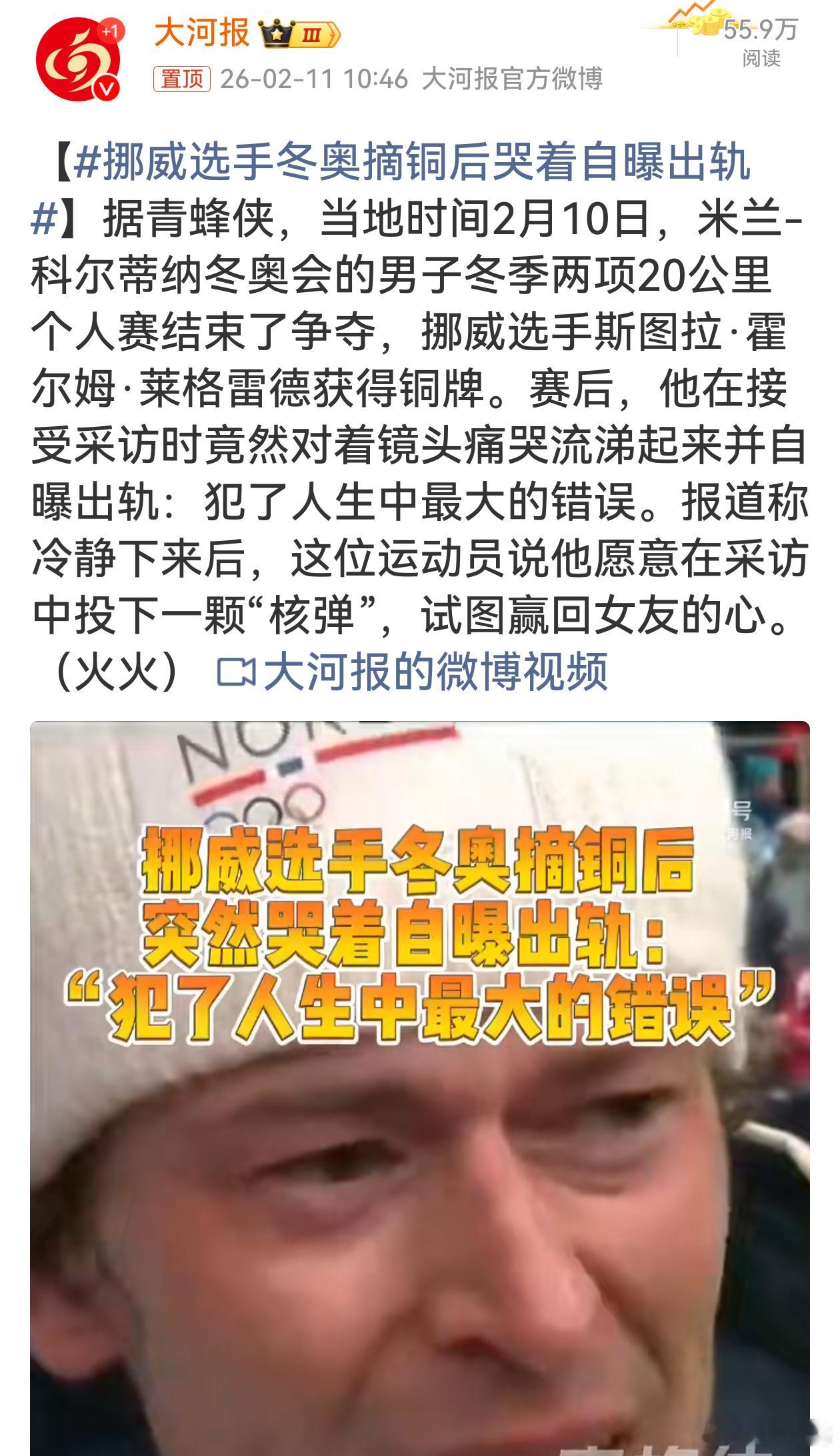 挪威选手冬奥摘铜后哭着自曝出轨这挪威选手夺铜后不走寻常路啊!不哭成绩哭出轨,把领奖台变成忏悔台。为赢女友心丢个“核弹”,也不知女友买不买单。这操作真是让人惊掉下巴,比赛夺铜是本事,感情问题也别太糊涂哟!