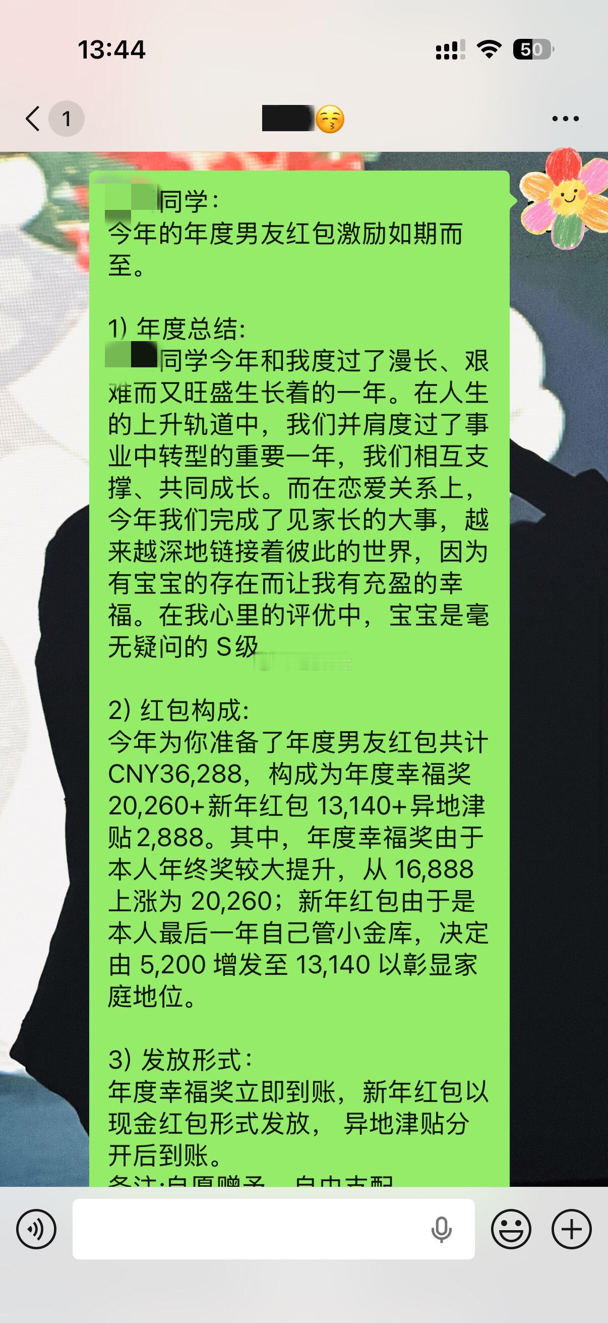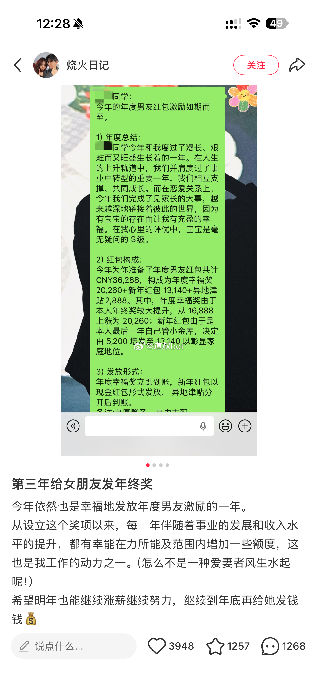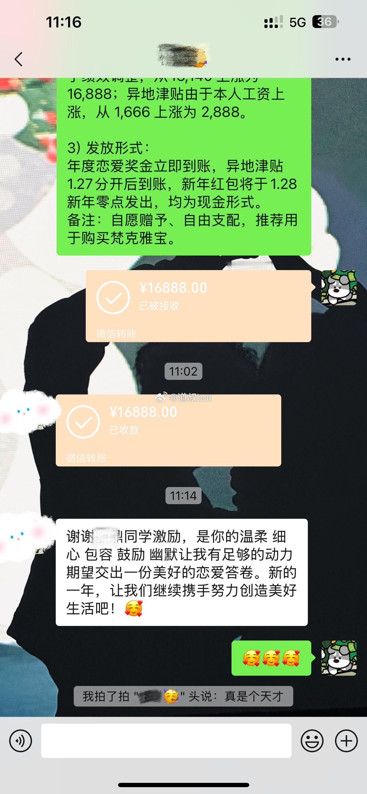 小红书博主称第三年给女朋友发年终奖了,备注自愿赠与,自由支配。