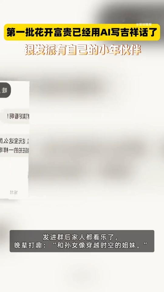 第一批花开富贵已经用AI写吉祥话了银发派有自己的小年伙伴 不得不承认ai行业越来越普及,甚至连老年人都很积极在用,过完小年除夕也即将来临,很多老爷爷老奶奶用ai生成吉祥话,这一下子省太多事了吧!