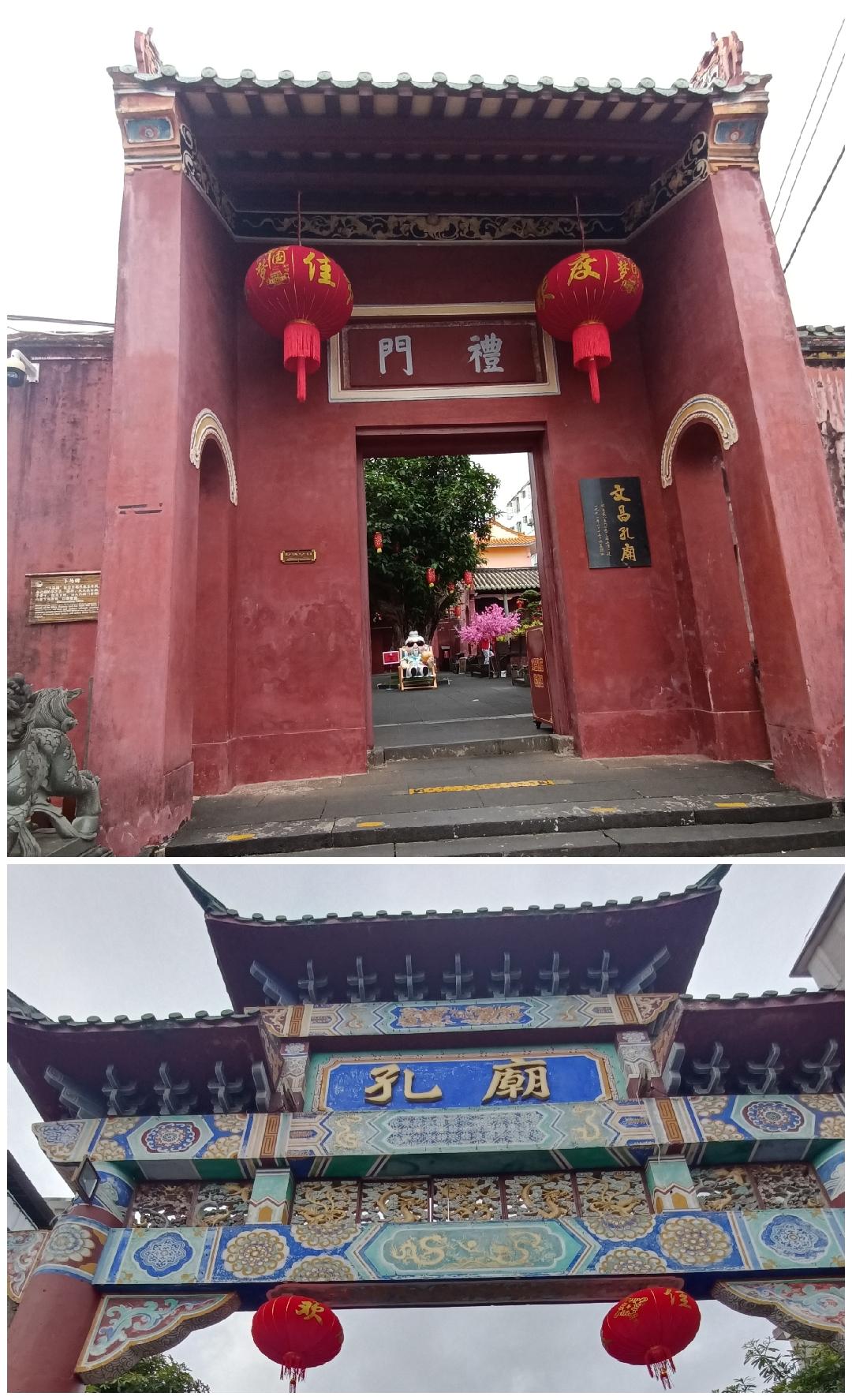 文南老街(图1-2),是条综合商业街,除了美食服装等,成排的百年老房子无敌了(图3);路间小径,台阶上望过去景色也很美(图4)。 附近的孔庙很有百年沧桑感(图5),棂星门、侧面古建筑和大成殿(图6-7), 崇圣祠和文昌殿(图8),无不透着百年的气息。 再往前走的林祠马祖庙(9-10),使我知道了妈祖姓林。隔壁修建中的靖康韩公馆(图11) 后一条街的耶稣堂(图12)据信徒说,也有百年的历史了,可惜教堂改造得太现代了。 海南 文昌 古建筑之美 历史古迹