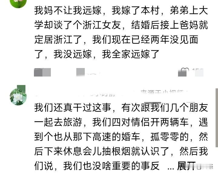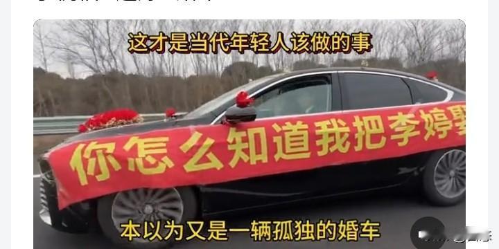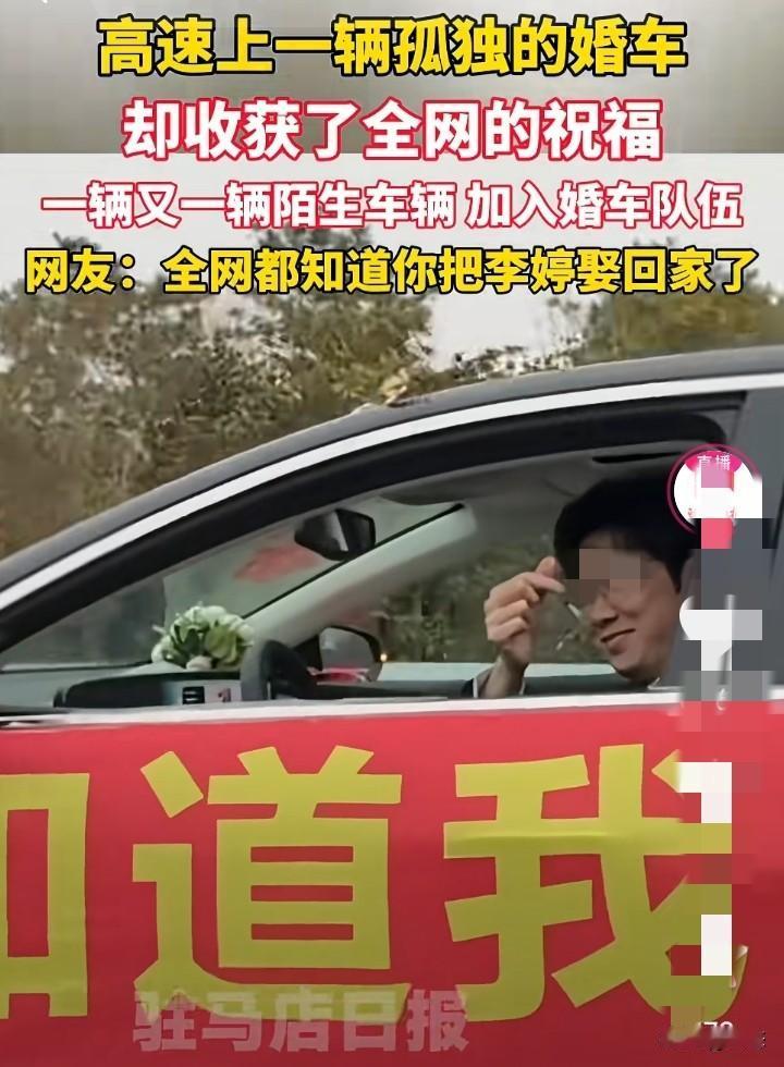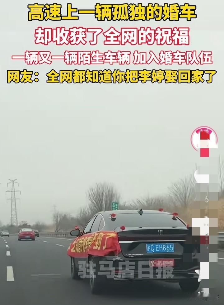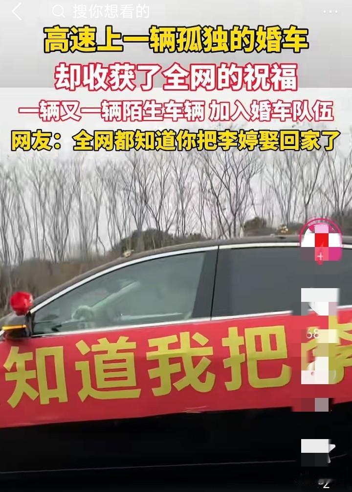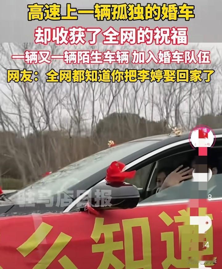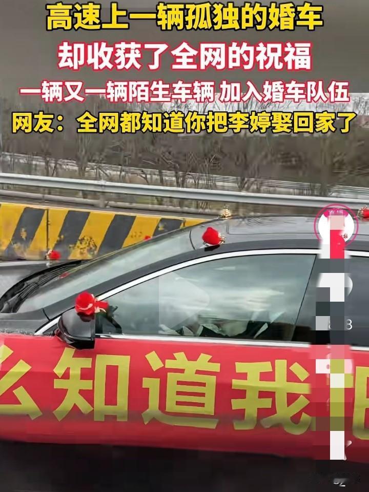 多辆陌生车辆加入远嫁婚车,多位司机交替陪跑。 有男子在高速公路上看到,一车上面贴着横幅,横幅上面写到你怎么知道我把李婷娶到。多辆车司机看到后,加入陪跑。 大家都知道远嫁婚车很难请到人去那么远的地方,能不麻烦别人就不麻烦别人。 有网友说我妈不让我远嫁,这位网友就嫁到了本村,弟弟上大学谈了个浙江的女朋友,结婚后就定居在在浙江,爸妈也跟着去。没想到只有自己没有远嫁,爸妈,弟都去远方了,这是不是给自己开了一个玩笑。 你们怎么看呢?远嫁只有一台婚车,会不会有点那个?
