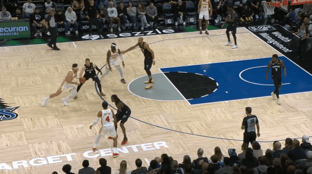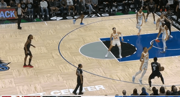 P4多森姆2秒接华子传球“拆炸弹”,接球后立即启动突破一步过掉扑防的基斯伯特,随后在长两分区域使用一二步急停拔起出手中投,手起刀落。
