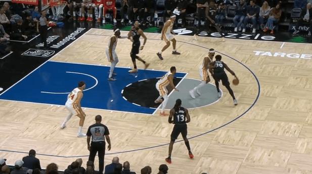 P1多森姆无球跟进至前场,边路接海兰德手递手后立即启动突破过掉文森特直杀篮下,躲过文森特身后掏球后双脚起跳上篮稳稳放进。