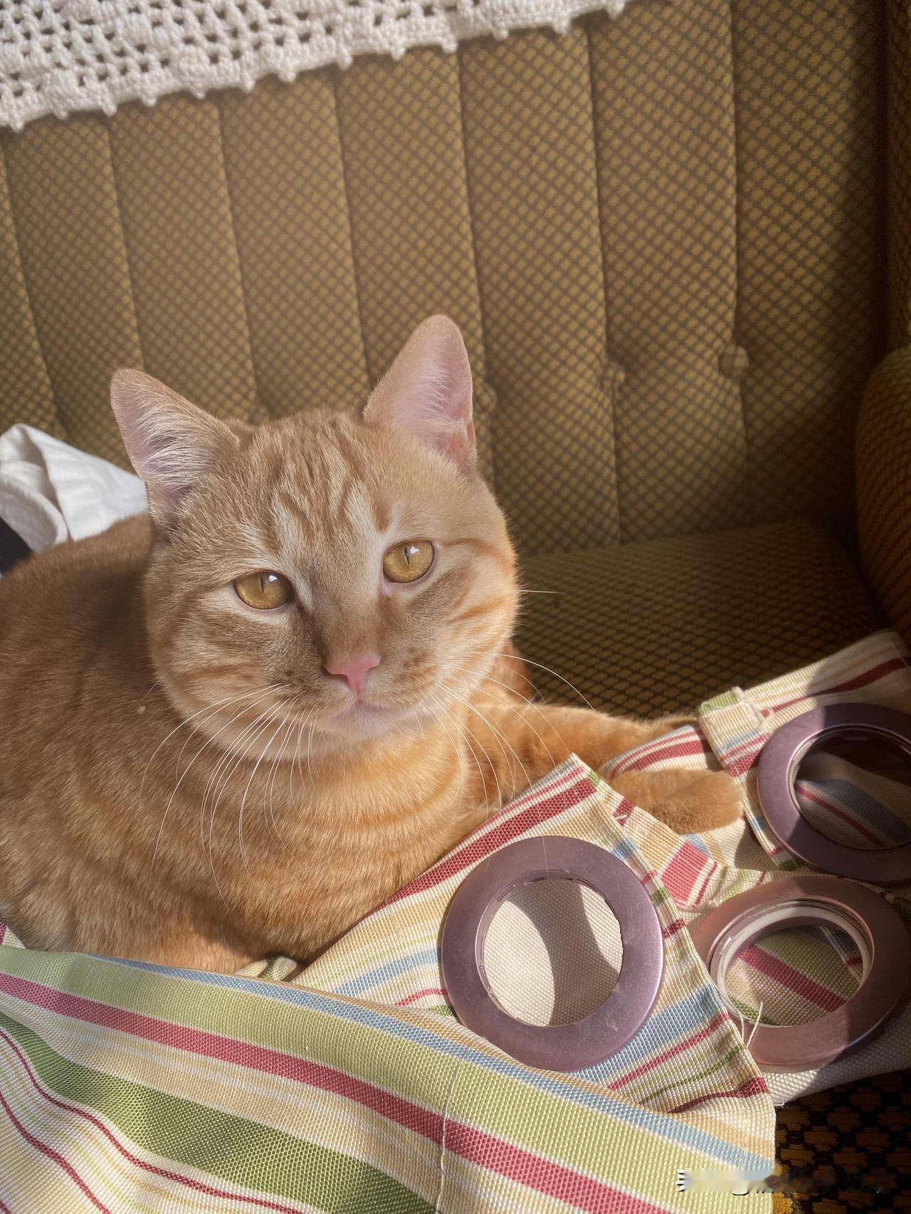 我的橘猫月月 过年前,把窗帘都拆下来洗干净,今天橘猫陪我挂窗帘,它是陪伴也是监督。