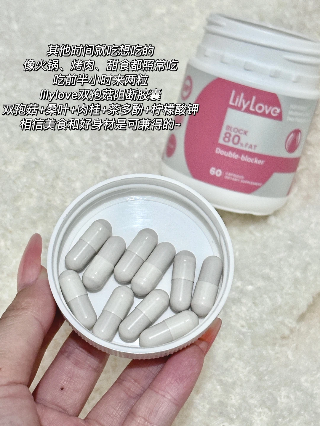 ①方法一 不压抑自己的食欲,每周给自己想吃就吃的时间 大家都难免有想吃高热量食物的时候,火锅、烤肉、奶茶、甜食这些,说实话要做到忌口很难,所以一周七天我会选一两天来吃这些想吃的东西,其他时间就清淡饮食,吃天然的食物,少油少盐。那一两天,重口味和糖油混合物那些,我就照常吃,不过会提前做小准备,吃前半小时来两粒lilylove 双孢菇,这个是双孢菇+桑叶+肉桂+茶多酚+柠檬酸钾,有时在家外卖前也先安排上。我是该管理时管理,该吃时就吃的这类型,个人觉得美食和好身材是可兼得的~ . ②方法二 吃东西时假想自己是人机在进食 *先吃蔬菜再吃肉,把碳水放到最后 (小tips:什么都还没吃的情况下,别先吃碳水) *吃的速度:我基本上每顿饭要吃半小时以上 (会边吃边放剧看,这样就没那么专注在吃饭这件事上了) 减脂人的精神状态快乐减脂减肥作弊技巧减肥方法lilylove双孢菇阻断胶囊纯饮食吃瘦节制比放纵更接近自由