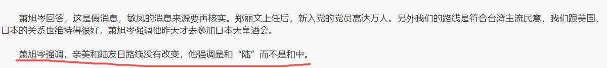萧旭岑回台湾就变了?2月10日,国民党副主席萧旭岑参加了日本驻台机构的酒会,公开表达国民党“亲美和陆友日”路线不会改变。 2月9日,日本台湾交流协会专门举办酒会,目的是庆祝日本天皇诞辰,规格不低,日本台湾交流协会代表片山和之也亲自到场。 萧旭岑作为国民党副主席,亲自出席这场酒会,本身就引来了不少关注,毕竟他刚从大陆回去没多久,在大陆期间,还明确提过坚持九二共识、反对台独,态度看着十分诚恳。 谁能料到,一回到台湾,他就变了个模样,参加完酒会后,公开宣称国民党“亲美和陆友日”的路线永远不会改变,一字一句说得十分坚定,没有丝毫含糊。 这话一出口,瞬间引发全网热议,很多人都在犯嘀咕,既然说要“和陆”,刚从大陆回去就去赴日本的酒会,还高调表态“友日”,这前后的反差也太大了点,难免让人多想。 先跟大家说清楚,日本台湾交流协会,说白了就是日本在台湾地区设立的官方性质机构,本质上就是为了维系日本和台湾地区的联系,背后藏着的心思,明眼人都能看明白。 萧旭岑作为国民党的核心人物,不可能不清楚这一点,可他还是选择出席这场酒会,还公开表态路线不变,难免让人质疑,他之前在大陆说的坚持九二共识,是不是只是随口应付。 了解内情的人都知道,萧旭岑这次大陆之行,主要是为了促进两岸的交流合作,期间多次强调,国民党会坚守九二共识,坚决反对台独,推动两岸关系朝着和平稳定的方向发展。 当时不少人还为他点赞,觉得国民党这次是真心想改善两岸关系,可没曾想,他一回到台湾,就用实际行动打了大家的脸,一边说和陆,一边亲近日本,这样的操作实在让人摸不着头脑。 有人猜测,萧旭岑之所以这么做,是为了平衡国民党在台湾地区的支持率,毕竟台湾地区有不少亲日、亲美的势力,国民党想要稳住地位,不得不做出一些妥协,两边都不得罪。 也有人觉得,这根本不是妥协,而是国民党一贯的作风——“两面讨好”,嘴上说着坚持九二共识、和陆友好,暗地里又亲近美日,想要两边都捞好处,可哪有这么好的事情。 其实国民党的“亲美和陆友日”路线,并不是现在才提出来的,好几年前就有了,只不过之前一直没这么高调,这次萧旭岑刚从大陆回去就公开这样子表态,难免让人觉得是“当面一套,背后一套”。 咱们国家一直明确表态,世界上只有一个中国,这是不容置疑的事实,任何想要分裂自己国家的行为,都是不得人心的,也注定是不会成功的。 萧旭岑作为国民党副主席,应该清楚自己的身份,更应该明白,两岸和平稳定,才是台湾地区最好的出路,一味地讨好美日,想要在中间左右逢源,到最后只会竹篮打水一场空。 很多台湾同胞也表示,他们想要的不是什么“亲美友日”,而是两岸和平相处,大家能够安居乐业,能够自由往来,那些一味亲近美日、忽视两岸关系的表态,根本不符合台湾同胞的根本利益。 还有人吐槽,萧旭岑这波操作,不仅寒了大陆同胞的心,也让不少支持国民党、希望两岸和平的台湾同胞感到非常的失望,毕竟大家想要的是真心实意的合作,而不是虚情假意的应付。 可能有人会说,出席一场酒会而已,没必要过度解读,可大家别忘了,细节见人品,立场看行动,刚从大陆回去就赴日本驻台机构的酒会,还高调表态路线不变,很难不让人多想。 国民党要是真的想推动两岸和平稳定,就应该拿出实际行动,而不是只靠嘴上说说,一边说着坚持九二共识,一边又亲近美日,这样的“两面派”作风,迟早会失去大家的信任。 希望萧旭岑和国民党能够认清现实,摆正自己的立场,不要搞这种“两面讨好”的把戏,只有真心实意地推动两岸交流合作,坚守一个中国原则,才能得到两岸同胞的支持和认可。 两岸和平发展,是大势所趋,民心所向,任何想要阻碍两岸统一的势力,任何虚情假意的表态,都注定会被历史淘汰,注定会被两岸同胞所唾弃。 大家对此有什么看法呢?欢迎各位在评论区留言!