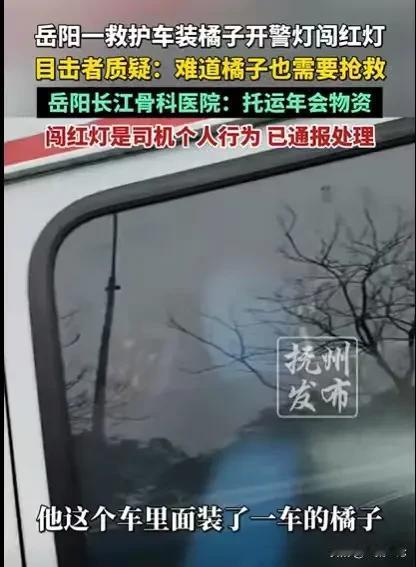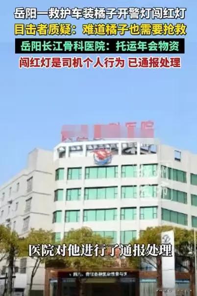 湖南岳阳,一辆救护车从男子身边呼啸而过,男子看了一眼,发现救护车里装的是橘子,司机却拉着警灯,闯红灯,男子很惊讶,难道橘子也要抢救,对此医院回复,说他们是民营医院,闯红灯是司机的个人行为,现在已经通报处理,取消他年终优秀员工奖。 男子正准备等红灯,突然听到身后有一阵鸣笛声,他从后视镜一看,是一辆救护车,开着警灯,一直往前开来。 他不能挡救护车的道,他往边边开了一点点,这才停下车等红灯。 很快,那辆救护车从他身边呼啸而过,这很正常,他们经常运送病人,需要闯红灯,一开始的时候,男子也没有把这件事当回事。 然而救护车经过他身边时,他看了一眼救护车,发现里面装的是橘子,他大吃一惊,救护车装的是橘子,还闯红灯了。 看到这一幕,男子震惊了,这橘子难道也要急救? 这一幕让男子感到很不可思议。 他不明白这救护车为何可以用来运送橘子,救护车是运送病人的车辆,却用来运送橘子,这有点让人匪夷所思,这救护车难道可以随便用的吗? 如果救护车可以运送橘子,那也没什么可说的,可为何只是运送个橘子,也要拉警灯,闯红灯呢? 看来这个救护车的司机,真是闯红灯闯习惯了,运送点橘子,也要闯红灯,根本不顾交通规则。 若是救护车运送的是病人,不管是男子,还是其他司机,这都无话可说,普通司机都要避让救护车,这个道理他们都懂。 可现在救护车不过是运送一些橘子,还闯个红灯,这实在让人难以接受。 发生这种事情,可能不是救护车运送橘子闯红灯,违反交通规则这么简单,这个现象的背后,存在很多争议。 有人就说了,为何一个救护车,可以随便装东西,如果他们装了这些东西之后,没有处理车辆,又用来运送病人,这对病人非常不负责。 还有人说了,救护车在没有运送病人的时候,不是紧急的情况下,就应该和普通的司机一样,遵守交通规则,不能因为闯红灯习惯了,就把它当成特权了,想怎么闯红灯就怎么闯红灯。 救护车如此闯红灯,它的背后可能是公信力的透支,这是会反噬的,一旦救护车随意闯红灯,到了后面可能就没有人谦让,到时候真有急事,可能就救不了病人了。 更有人觉得,这些救护车的司机,如果把闯红灯作为他们的特权,随意闯红灯,将会给交通带来一定的负担,甚至会产生不必要的麻烦。 大家觉得如此特殊的车辆,不能随随便便运送别的东西,当做普通车辆来使用。 对于这件事,医院做出了回应,说他们是民营医院,他们搞年会,所以就用救护车运送了一些年会的物资, 至于闯红灯这个行为,是司机的个人行为,他们也对司机通报处理了,取消了司机年终优秀员工奖。 仅仅如此处理,更让人热议纷纷,这出了事情就是司机的个人行为,若是立了功,那就是单位的行为,一出事就把责任推到司机身上,这处理方式不妥。 救护车作为特殊车辆,车上可能还会配备病人所用的医疗器材,不应当随便放别的物资,对这些器材造成影响,不管是民营医院还是别的医院,都应该对病人负责。 那么救护车运送橘子闯红灯的行为有何不同呢? 救护车并不代表可以随便闯红灯。 《道路交通安全法》第53条规定,警车、消防车、救护车、工程救险车执行紧急任务时,在确保安全的前提下,不受行驶路线、行驶方向、行驶速度和信号灯的限制。 适用条件: 须正在执行紧急任务:如紧急运送危急病患等。 须确保安全:驾驶员需根据实际路况判断,不能因特权而不顾安全。 救护车要在特殊的情况下才可以闯红灯,否则就是违反交通法规的行为。 救护车等特种车辆的通行特权,是用于保障生命救援的,神圣不可滥用。 那么你对这件事有何看法?