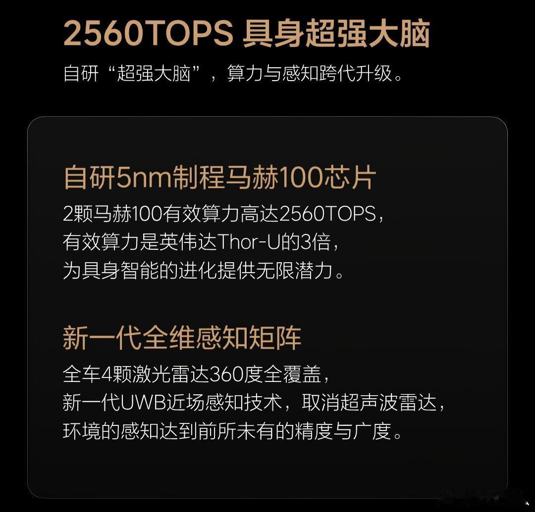还有一个点,就是这台车搭载了两颗5纳米级别,就是理想自研的马赫100芯片。据说算力呢能够达到2560TOPS,但这个芯片到底是哪家来代工和制作的,他们并没有去详细说,这也是将来有机会的话可以深挖一下的东西。