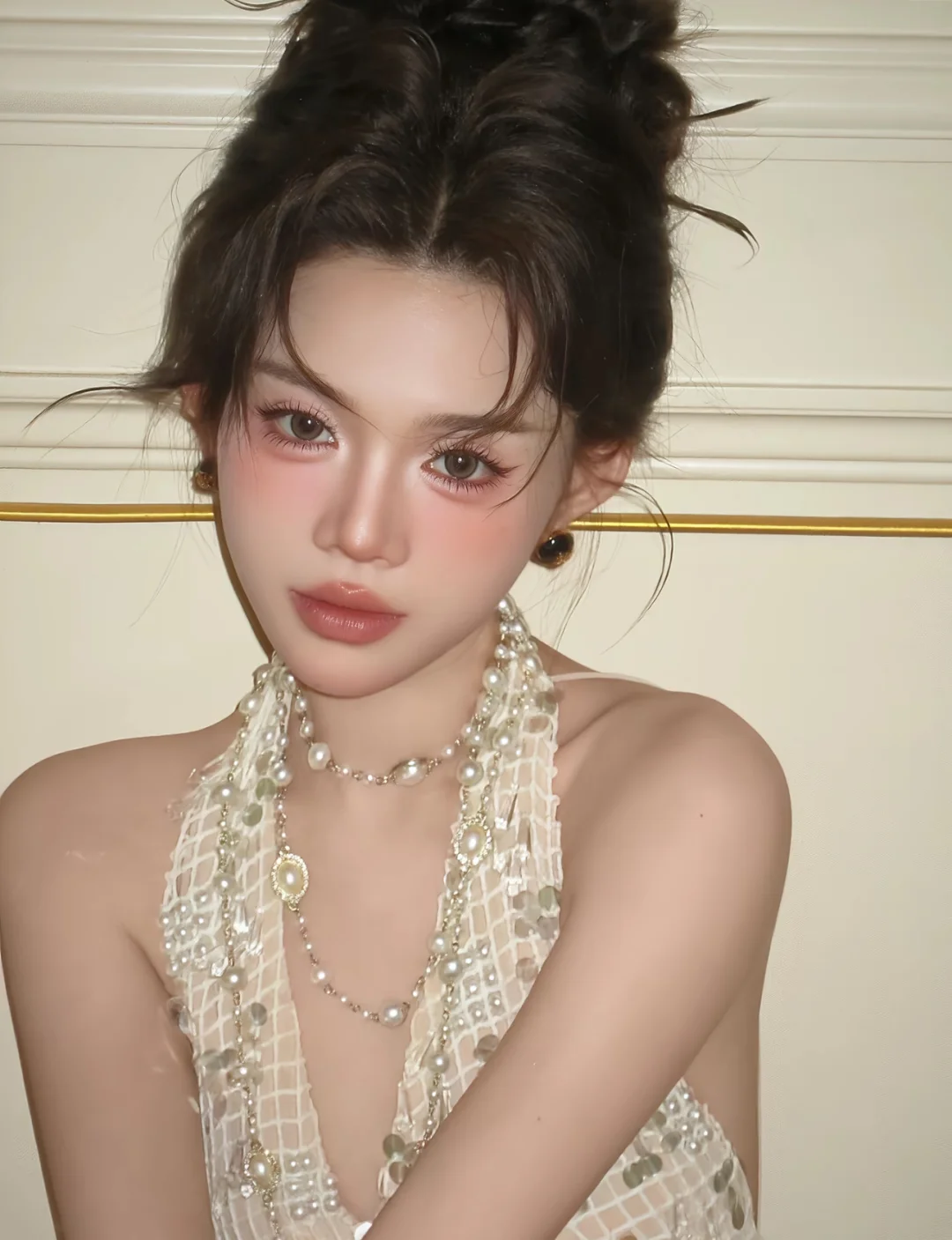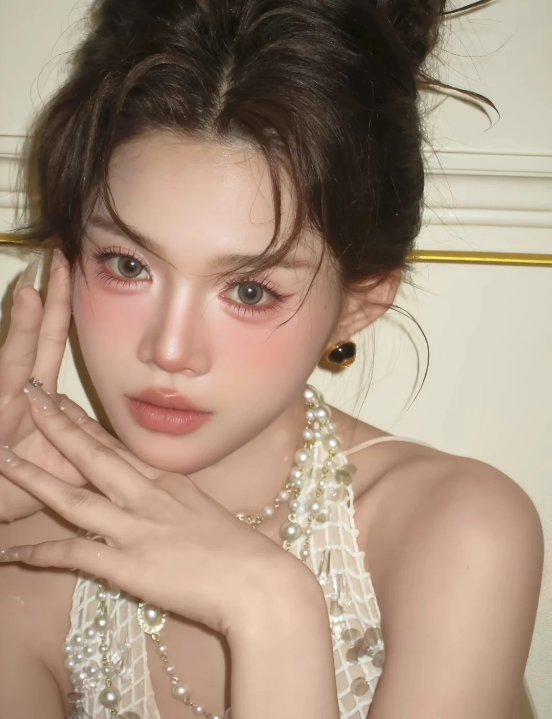 化完直接从现实美到镜头里~底妆选自带磨皮的奶油肌,细腻又有光泽,怼镜头也看不到毛孔;眼妆是重点!睫毛要根根分明像太阳花,再叠加细闪碎钻,眼睛像装了星光,眼线微微上挑,又甜又飒;唇釉选镜面水光感的裸粉色,嘟嘟唇直接把富家女的娇憨感拉满~