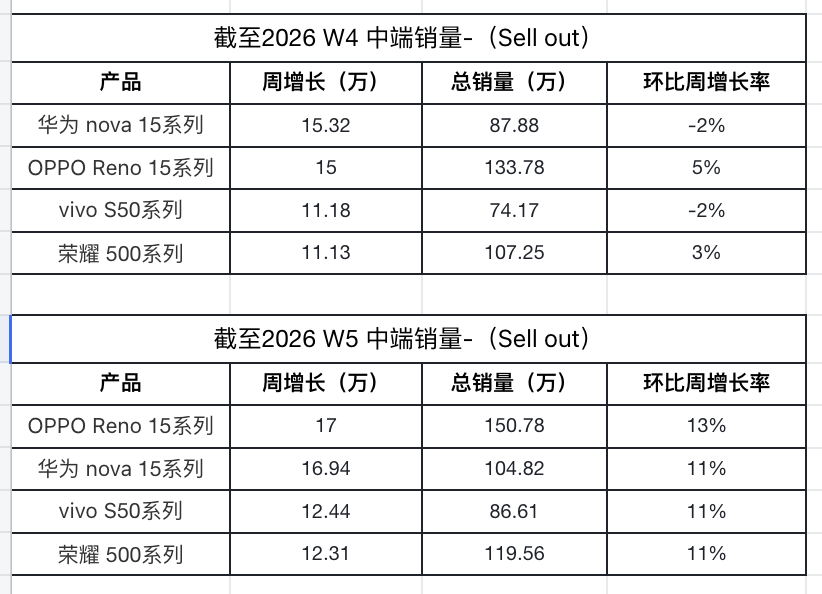 📊基于RD观测销售数据:四家品牌终端销量第四周增长排名OPPO第一对比第四周各家销量均有明显增长马上过年了大家的购机热情也高了