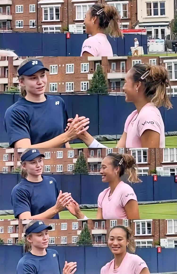 莱巴金娜:文呀,有啥好事这么开心呀[害羞] 郑钦文:莱巴姐姐,你真的太漂亮了呢[星星眼] 网友:文呀,把你AK47的嘴角压一压[我想静静] … 今晚,郑钦文术后复出第三战即遇上状态火热的莱巴金娜,确实赢面不大,不过没关系,郑钦文也不是满血的,慢慢找到比赛感觉,能到第三轮相当可以了,没什么好挑剔的!!大家觉得呢?但是说实在的 如果娜娜要是觉得累的话,可以让我文赢[呲牙]。加油加油,双方都加油!!郑钦文 莱巴金娜