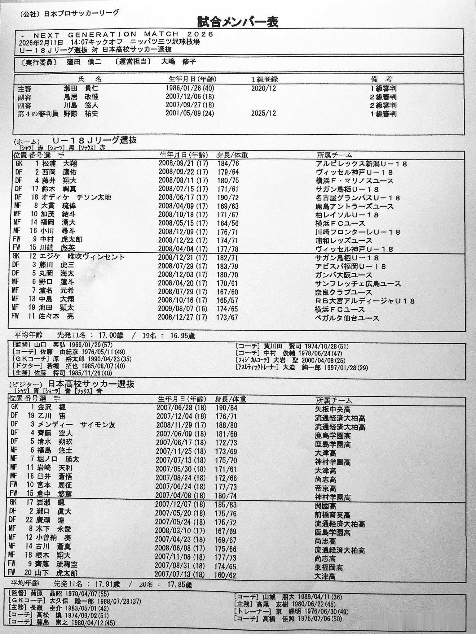 日本足球小将【NEXT GENERATION MATCH 2026|比赛结果】(球员信息:网页链接)