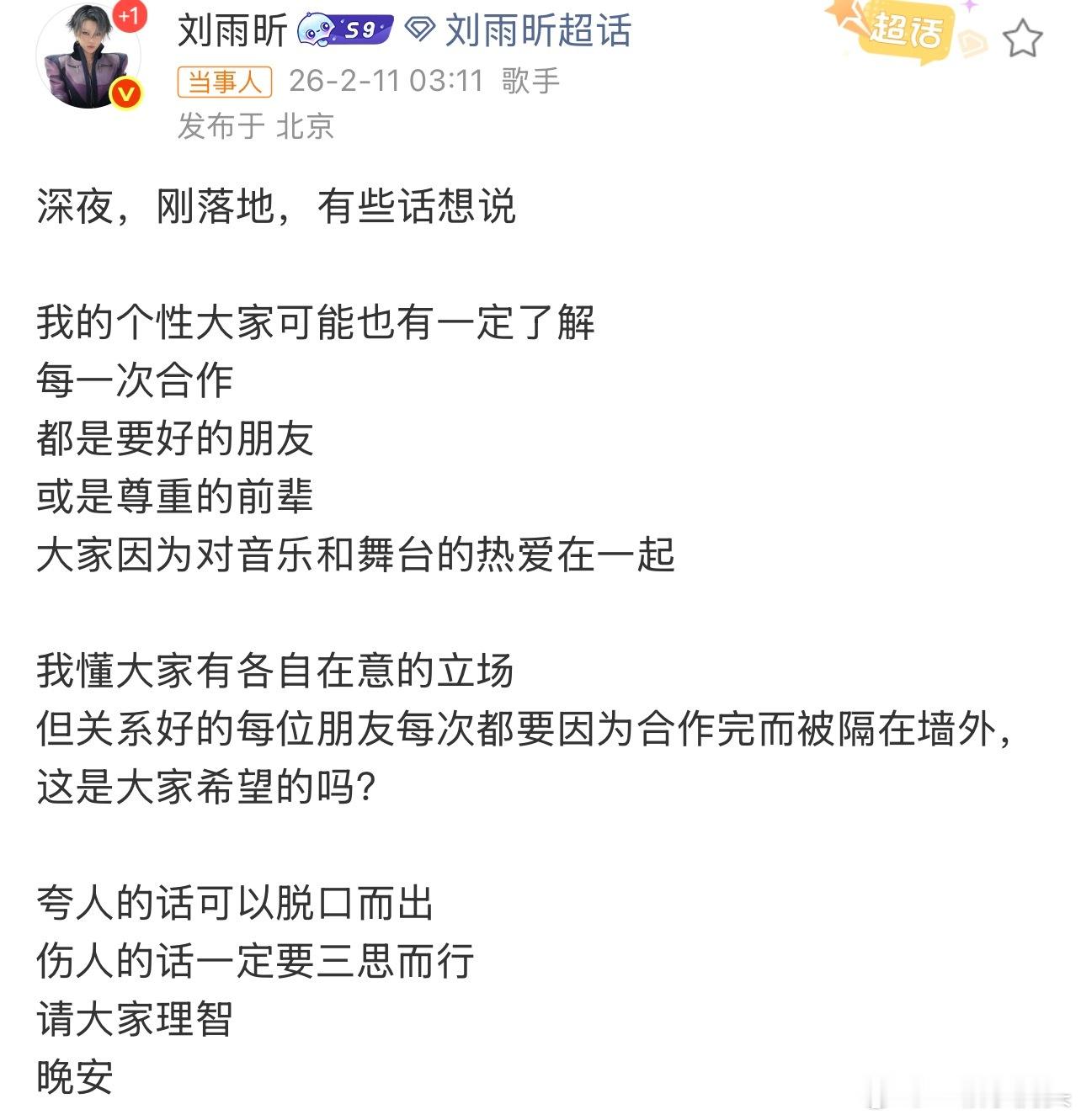 还是最初的那个刘雨昕,一直以来都保持着和善的态度对待人事物,给粉丝做很好的引导和保护,雨昕超棒。刘雨昕 伤人的话一定要三思而行