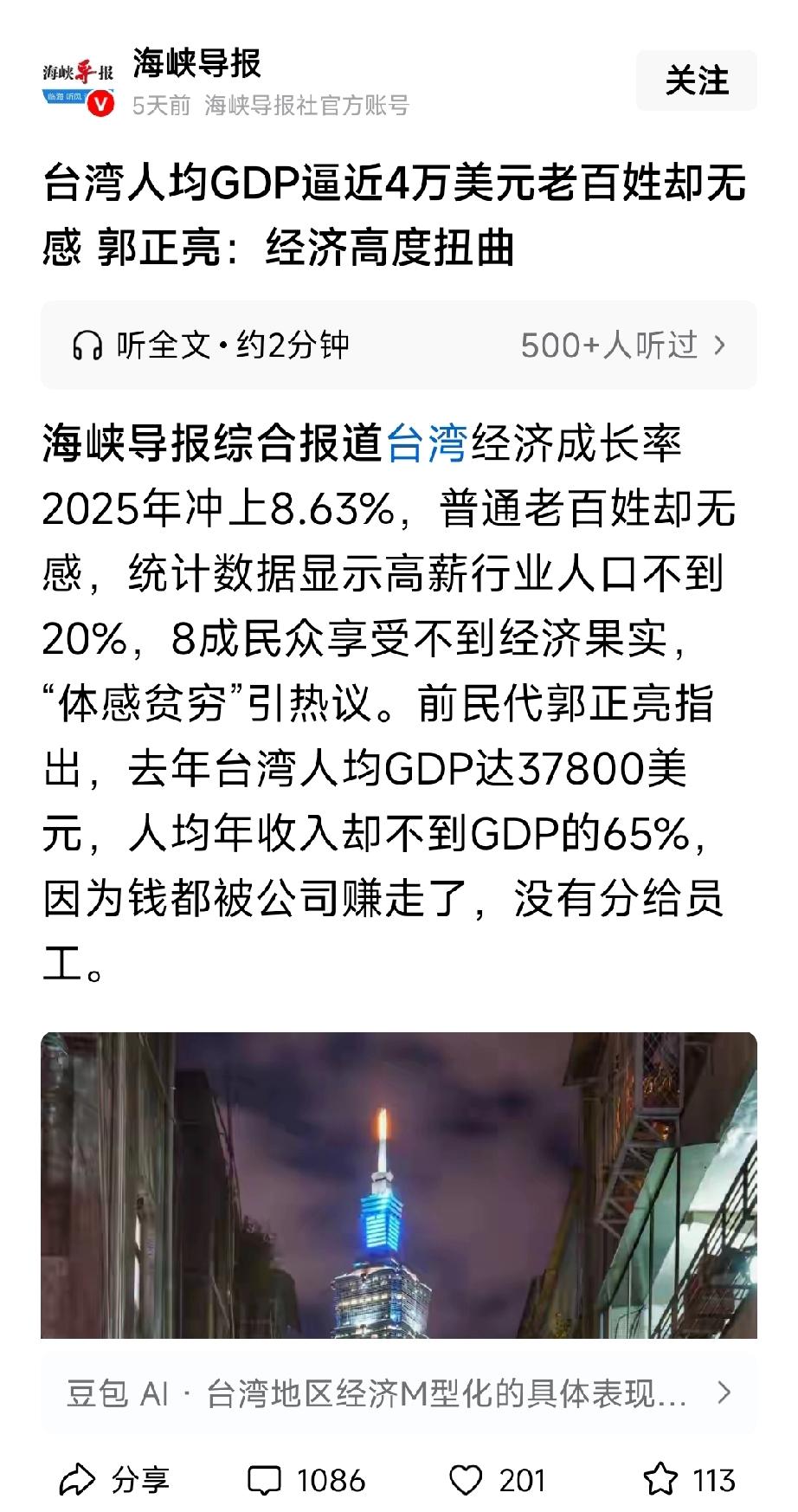台湾人均GDP虽然快达到四万美元,但是老百姓却无任何感觉,因为台湾GDP都是虚假