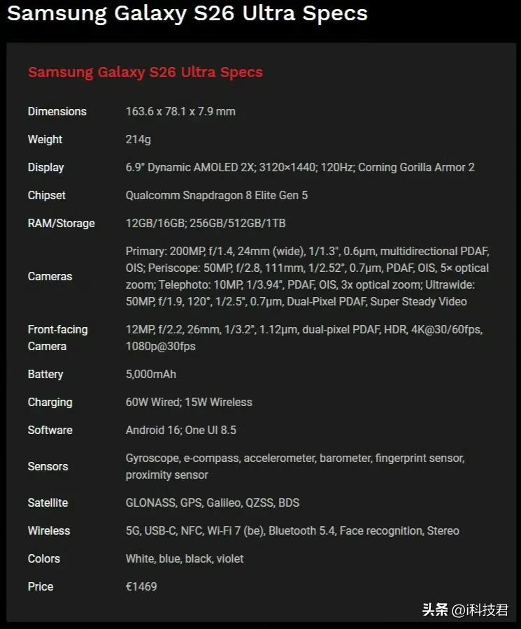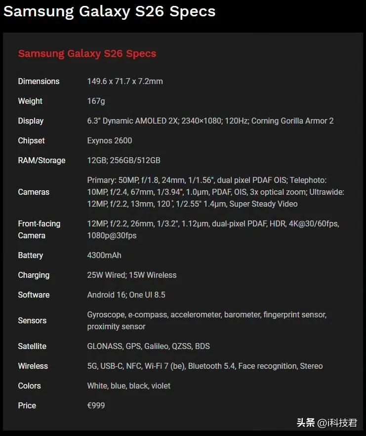 三星 Galaxy S26 系列发布会官宣:北京时间 2 月 26 日凌晨 2 点(正月初十) 首发搭载三星自研 Exynos 2600 芯片,首个2nm手机,性能较提升39%,AI性能提升113% Galaxy S26、Galaxy S26+以及Galaxy S26 Ultra三款,3月初国行版上市发布,大家计划买哪个?