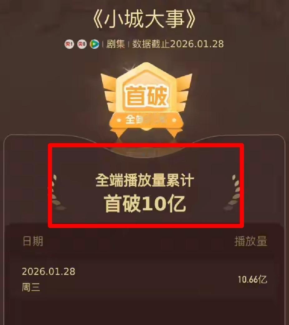 好消息,据今日“酷云数据”的统计,电视剧《小城大事》全端播放量累计已经超过10亿啦! 从开播以来收视率一直是同时段的榜首,而今晚的收视率高达2.7%,占在市场率的12%,现在都收官了全网的讨论度居然越来越大,热度断层领跑,说明这部戏的后劲十足呀! 今天,这部剧还在北京举行了研讨会,电视总局副司长朱正文提到,小城大事提供了“另一种多样化创作模式探索的路径选择”! 一部小城大事填补了改革年代的认知,郑德成(黄晓明)和李秋萍(赵丽颖)诠释了年代的进步,希望这部戏长尾效应影响的更加广泛。 小城大事 赵丽颖 人气演员赵丽颖 黄晓明 赵丽颖[超话]