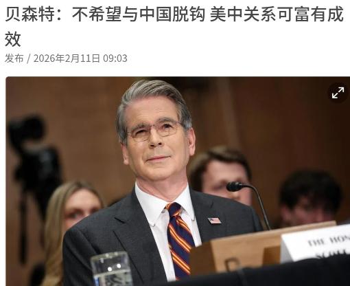 美国财长突然对我们喊话,要跟我们进行合作!2月11日,美国财长贝森特表示,当前的美中关系处于一个相当舒适的位置。我们将会是竞争对手,但希望这种竞争是公平的。我们不希望与中国脱钩,但确实需要去风险。中国需要对经济结构进行再平衡。世界不可能长期处于中国持续保持1万亿美元贸易顺差的状态,这根本行不通。 明眼人都能看出来,贝森特的这番话里藏着太多复杂的心思,既有不满,也有明显的妥协和诉求。 尽管他字字句句都透着对中美高额贸易顺差的不满,也坦然承认了中美之间的竞争态势,但那句“不希望与中国脱钩”,却跳出了美国近期一贯的强硬画风,显得格外不同寻常。 这种反常的表态,绝非贝森特随口一说,背后藏着的是美国当前的现实困境和真实需求,每一句都贴合着当下中美经贸往来的实际情况。 要知道,中美建交这么多年,双边贸易投资合作早就形成了深度绑定的格局,实现了优势互补、互利共赢,这是不争的事实。 根据统计数据显示,2024年中美双边货物贸易额就达到了6882.8亿美元,是1979年建交时的275倍,这样庞大的贸易规模,早就让两国形成了一荣俱荣、一损俱损的局面。 美国心里比谁都清楚,中国市场对他们来说有多重要,中国不只是美国第三大出口目的地国,更是美国大豆、棉花等农产品的第一大出口市场,集成电路、煤的第二大出口市场。 2024年,美国出口的51.7%的大豆、29.7%的棉花,还有17.2%的集成电路,最终都销往了中国,这些数据实实在在地证明,中美合作从来都不是单方面的受益。 贝森特的表态,本质上就是美国意识到了自身的需求,他们既想和中国保持竞争,又不敢轻易打破当前的稳定局面,毕竟一旦真的脱钩,受损的只会是美国自己。 此前美国也曾试图搞“脱钩断链”,推进所谓的“去风险化”,甚至推动供应链重组,引导制造业产能向其他国家迁移,但这些尝试并没有达到他们预期的效果。 反而,美国企业在华的利益牵扯太深,2023年美国在华新设投资企业就有1920家,实际投资金额33.6亿美元,较上年增长了52.0%,越来越多的美国企业不愿意放弃中国这个超大规模市场。 再说所谓的贸易顺差,中国从来都没有刻意追求过,这些年中国经常账户顺差与国内生产总值之比,已经从2007年的9.9%降到了2024年的2.2%,一直在主动调整。 而且美国只盯着货物贸易的顺差,却忽略了服务贸易和企业本地销售的收益,2023年美国对华服务贸易顺差就有265.7亿美元,2022年美资企业在华销售额更是高达4905.2亿美元,远高于中资企业在美的销售额。 贝森特强调让中国调整经济结构、平衡贸易,说白了就是美国想在经贸往来中获取更多利益,却又不愿意放下身段,只能用这样的方式表达诉求。 他口中的“公平竞争”,本质上就是希望中国能按照他们的节奏走,而“不脱钩”才是他们的真实底线,毕竟脱离了中国市场,美国很多产业都会受到冲击。 所以说,贝森特这次喊话合作,并不是突然转变了态度,而是美国基于自身利益做出的理性选择,他们希望在竞争中维持中美关系的稳定,更希望继续从中国市场获取利益。 这种既想竞争又想合作的矛盾心态,恰恰暴露了美国当前的困境,也印证了中美合则两利、斗则俱伤的道理,这就是贝森特这番反常表态背后最核心的逻辑。