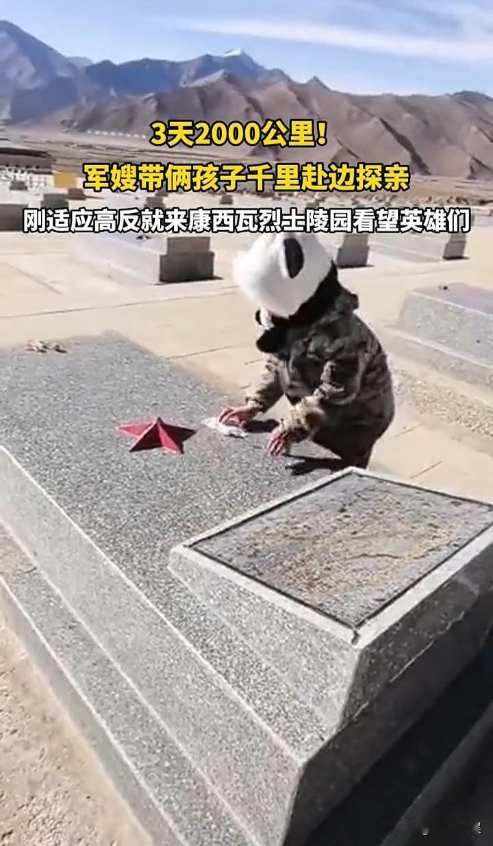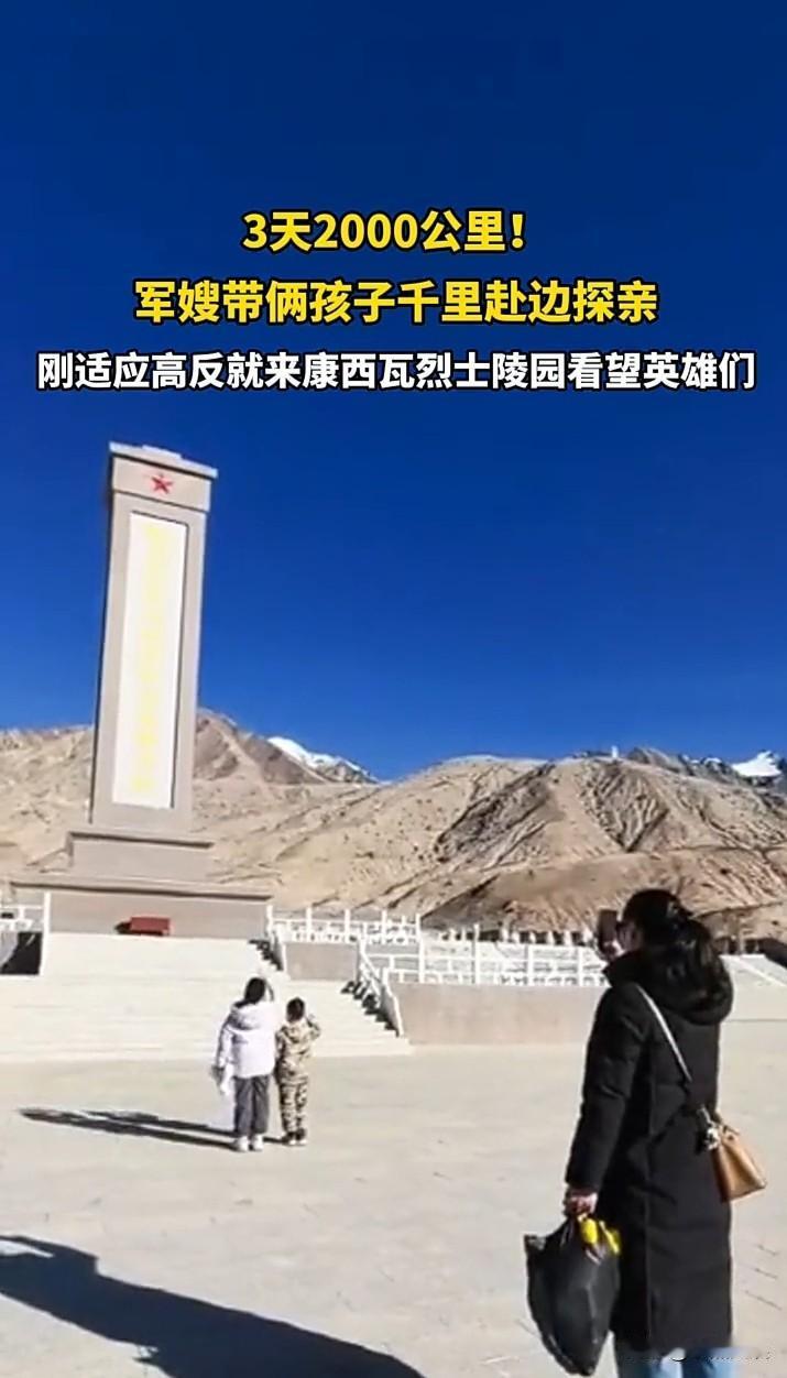最美军嫂! 带着两个孩子,3天跨越2000公里,前往康西瓦烈士陵园看望英雄。 她说她们刚适应高原反应就带着孩子上来烈士陵园了。 看着孩子整齐有力的敬礼,擦去碑墓上的灰尘,也许这就是对孩子最好的教育吧。