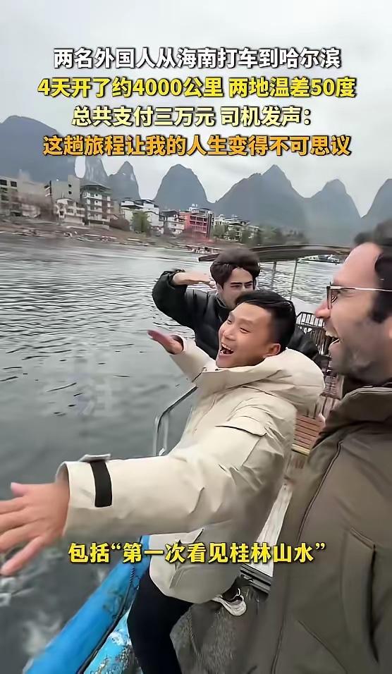 “这就是有钱任性!”近日,海南,两名外国男子,为了体验中国的风土人情,竟在软件约了个出租车司机,想要从海南开到哈尔滨,这把司机吓得不轻,不过还是同意了,就这样,三人边开边玩,最终在4天后,到达了哈尔滨!司机:我的人生变得不可思议! 常年在市区跑短途的出租车司机,面对跨省四千公里的订单,第一反应都是不敢相信。海南到哈尔滨的自驾里程接近4000公里,要完成琼州海峡轮渡,还要穿过华南、华中、华北、东北多个区域,气温落差超过四十摄氏度,常规出租车运营根本不会涉及这样的长途路线。两名外国男子提前沟通行程细节,主动预付1.5万元车费,全程油费、过路费、食宿和景区开销都由他们承担,实打实的诚意打消了司机的所有顾虑。 接单的罗师傅开了十二年出租车,生活轨迹一直围着海南市区打转,他没出过远门,没见过长江,没踩过积雪,人生里的远方只存在于手机视频里。出发前他把车辆全面检修,备足应急物品,跟家人反复说明行程,家人既担心长途驾驶的安全,又盼着他能看看外面的世界。两位外国游客拒绝飞机高铁的快速通行,他们只想沿着公路慢慢前行,用最接地气的方式感受中国从南到北的地貌变化与人文特色。 三人没有严格的赶路计划,驾驶节奏完全跟着体力和路况调整,遇到感兴趣的城市就停车停留。罗师傅跟着他们第一次跨越琼州海峡,第一次站在长江岸边,第一次走进长沙的市井街巷品尝特色小吃,第一次抵达北京看见天安门。语言不通就用翻译软件逐句交流,饮食偏好不同就互相迁就,四天的朝夕相处,让三个背景迥异的人放下陌生感,相处得自然又融洽。 越往北行进,窗外的风景变化越明显,常绿植被慢慢变成落叶乔木,再往后就是连片的白雪。抵达哈尔滨时,罗师傅踩着厚厚的积雪,触摸结冰的路面,39年的人生里,他第一次亲身感受北国的冬日景致。外国男子也顺利完成旅行初衷,他们用特别的跨城打车方式,直观体会到中国地域文化的丰富与包容。 这趟行程从来不是简单的物质挥霍,而是普通人跳出固有生活圈的珍贵尝试,也是不同国籍之间真诚相待的温暖写照。网约车的便捷让跨区域出行有了更多可能,普通人的善意与好奇,让一段看似离谱的行程,变成了刻在记忆里的独特经历。罗师傅反复说,这趟旅程彻底改变了他对生活的认知,平凡的日子里,真的会迎来猝不及防的惊喜。 各位读者你们怎么看?欢迎在评论区讨论。