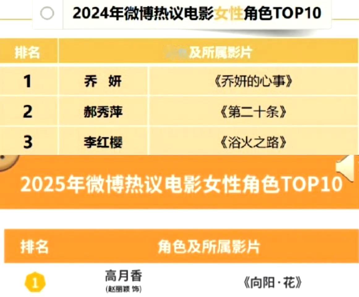 赵丽颖的电影角色连续两年都是女演员年度第一,而且前三名都是她。
