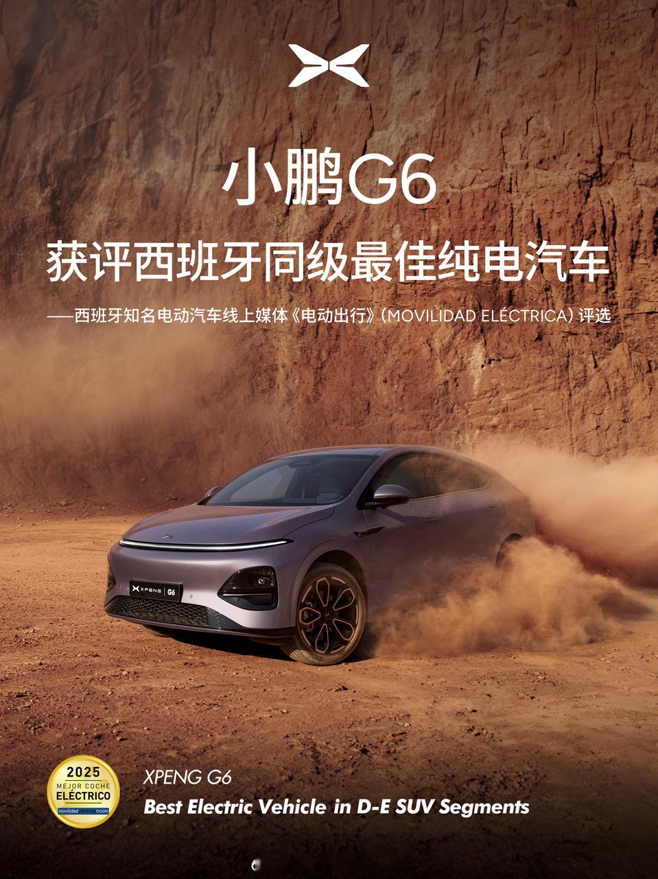 小鹏G6在欧洲又获荣耀,这种内笼大的suv在海外是真的受欢迎啊,贴近该市场用户的使用场景这点太重要了!小鹏汽车小鹏G6获评西班牙同级最佳纯电汽车 小鹏G6的全球认可度持续认证!不仅在欧洲凭借能效表现及舒适驾乘获评西班牙“D级SUV最佳纯电车型”,在东南亚也频频亮相高端领域,真正诠释了“中国车,全球范儿”。