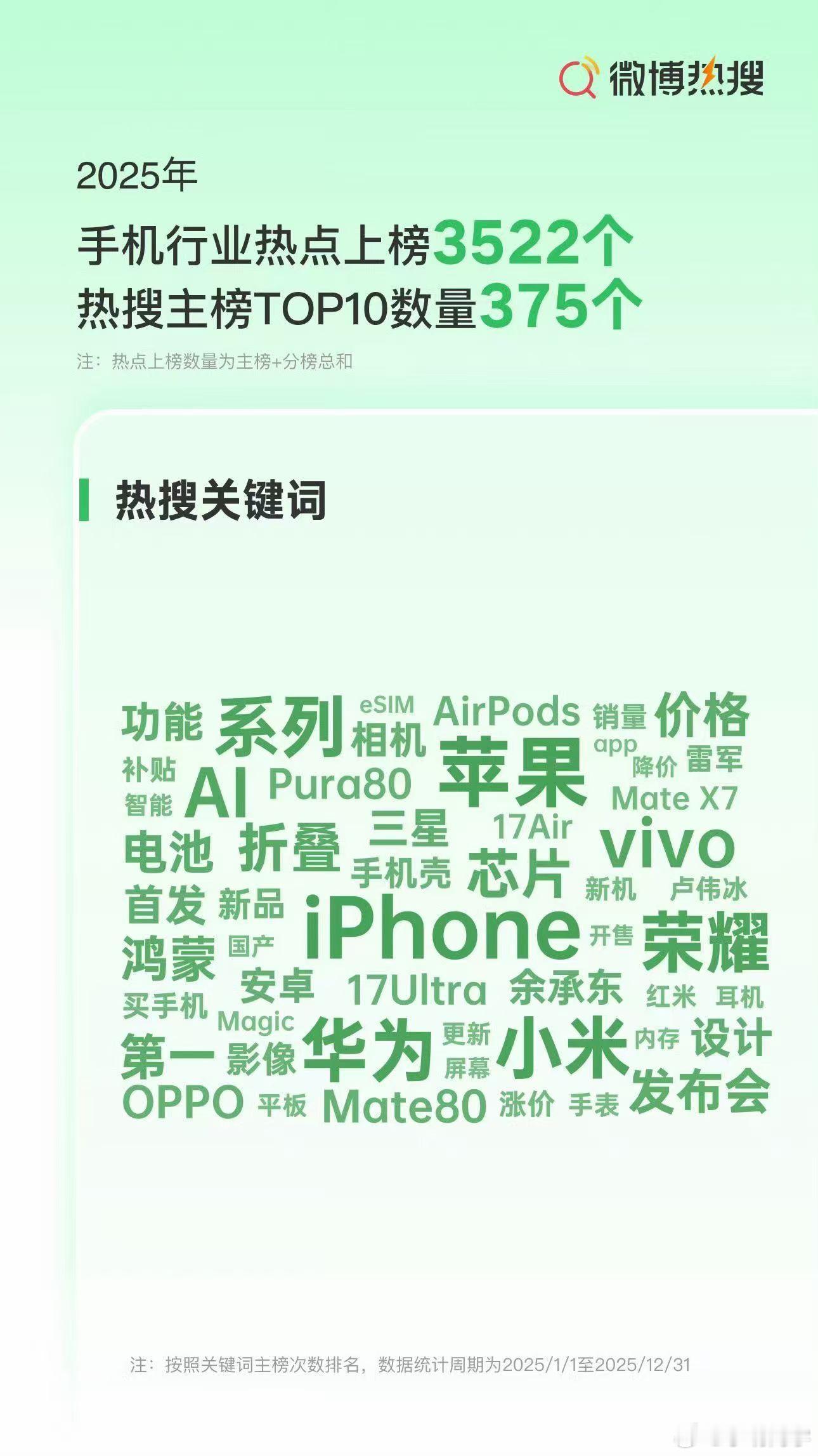 微博2025手机行业热搜趋势报告来啦2025年,微博上的手机热搜不仅体现了大V创作者的内容热情,更代表了用户的消费喜好,值得厂商大大们多多关注。