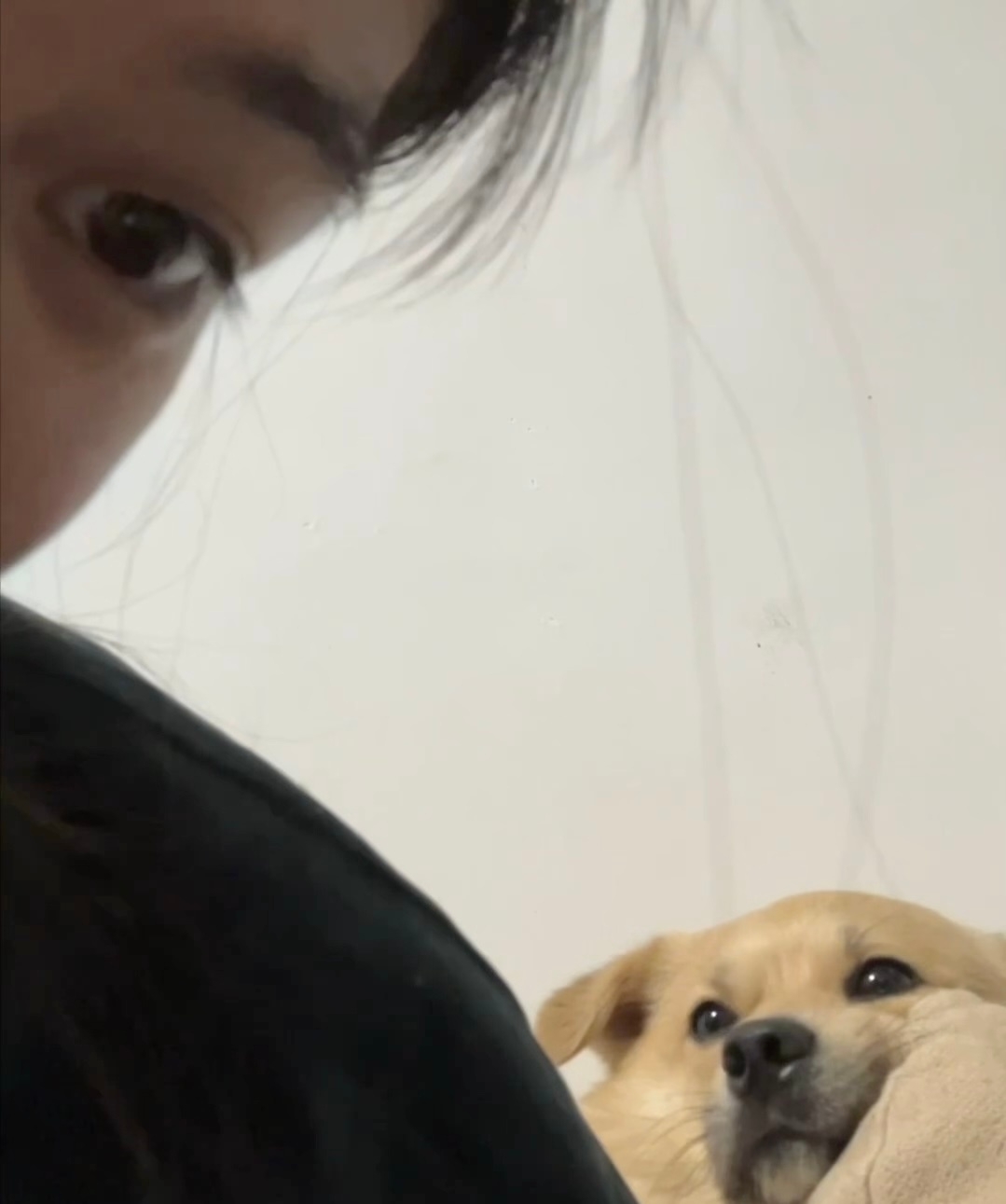 “打开摄像头想看看小狗在我后面干嘛:呜呜呜,眼睛亮亮的看着我,满眼都是我啊啊啊”