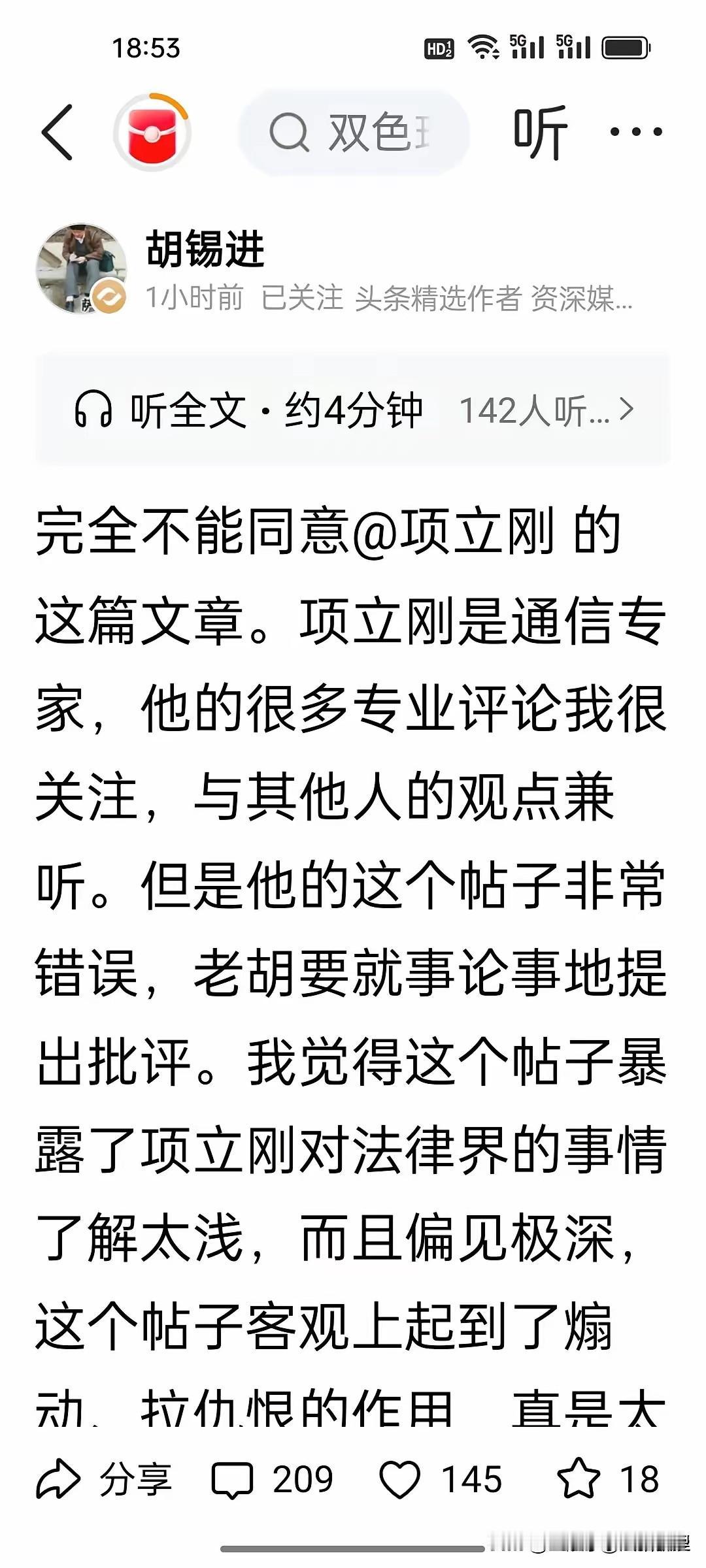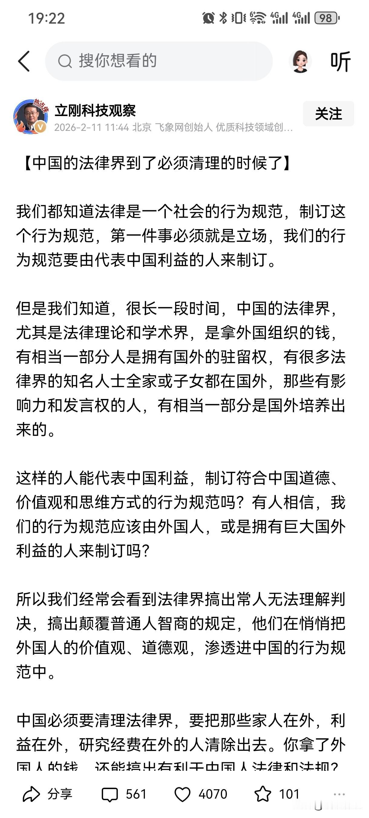 项立刚:中国的法律界到了必须“清理”的时候了! 胡锡进:完全不能同意… 他俩谁说