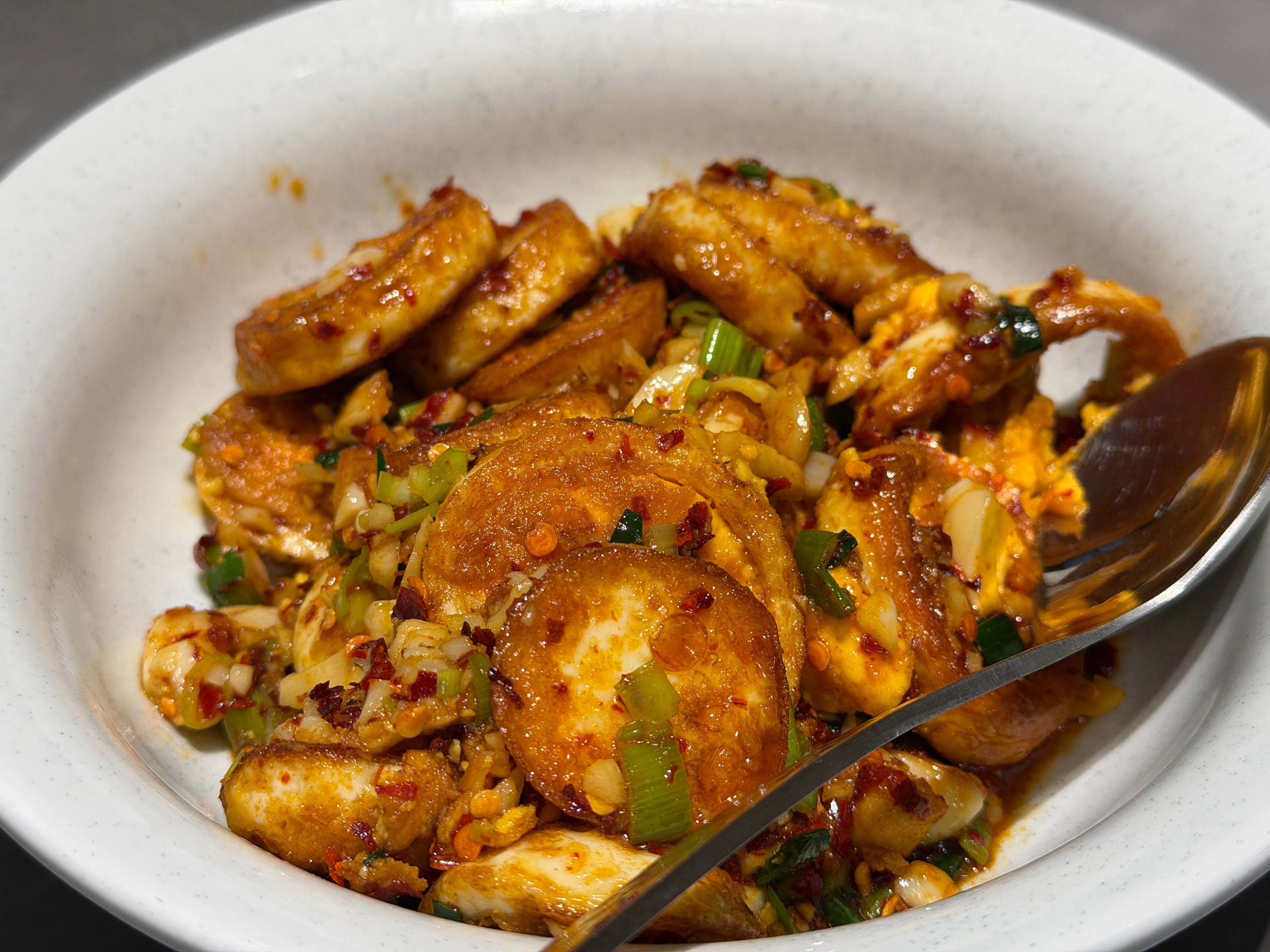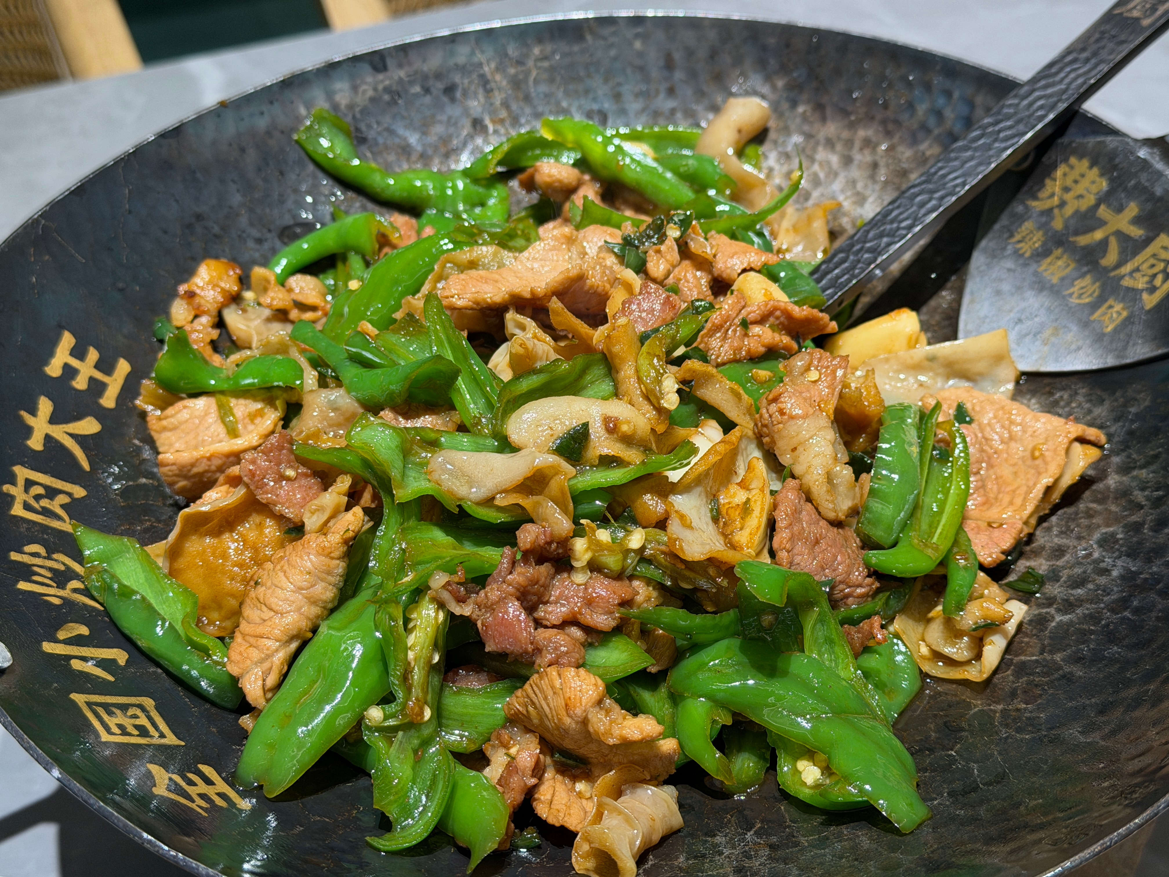 家附近开了家费大厨想起来当年长沙开第一家的时候吃过大概有十几年没吃过了当年最深的印象就是炒的有点咸这次五点多过来就得等位了人气还是很旺,等了大概半个小时点了辣椒炒肉、金钱蛋、热卤,一百五左右招牌的辣椒炒肉还是在线的选的肉跟辣椒都不错,很下饭,下了我三碗米饭不过也是有一点点咸金钱蛋好评,嘎嘎下饭,量也不少热卤很入味,但是对我来说太辣了我吃个香干都辣,都给朱老师吃了米饭五块一位,续不要钱要给个好评它家的米目前来说也是不错的,糯糯的粒粒分明今年的动卧是坐不上了,明年争取抢到汉堡杨费大厨辣椒炒肉坐高铁感受经济脉动