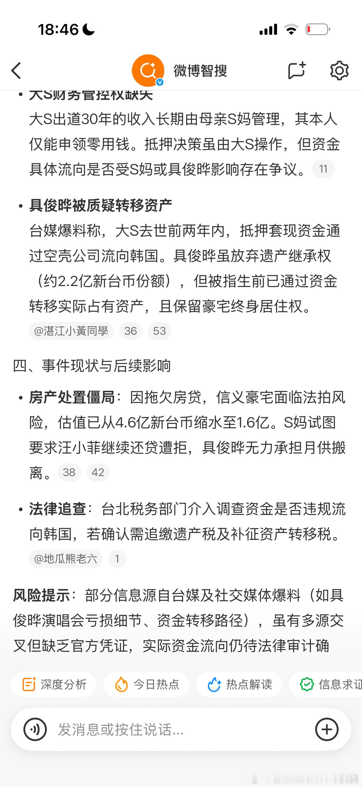智搜自动弹出来给我一个回答。“大S抵押房产的钱去干嘛了?”通过智搜才知道,1、具
