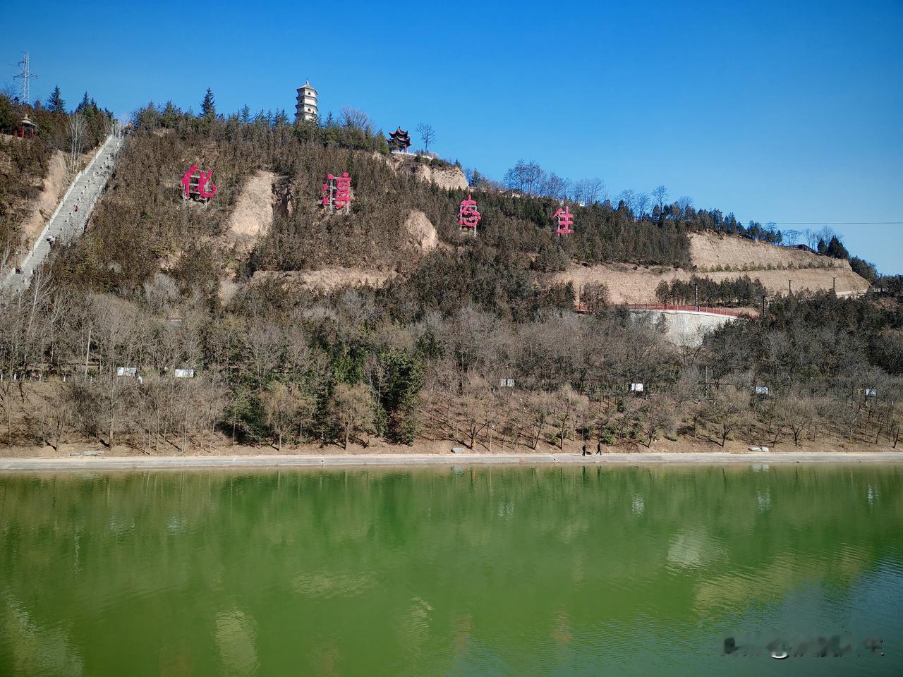 陕西淳化甘泉湖,黄土高原上的一颗璀璨明珠,冬日的景色竟然如此的宁静秀美,身临其中,心旷神怡,这就是旅游的奥妙吧。