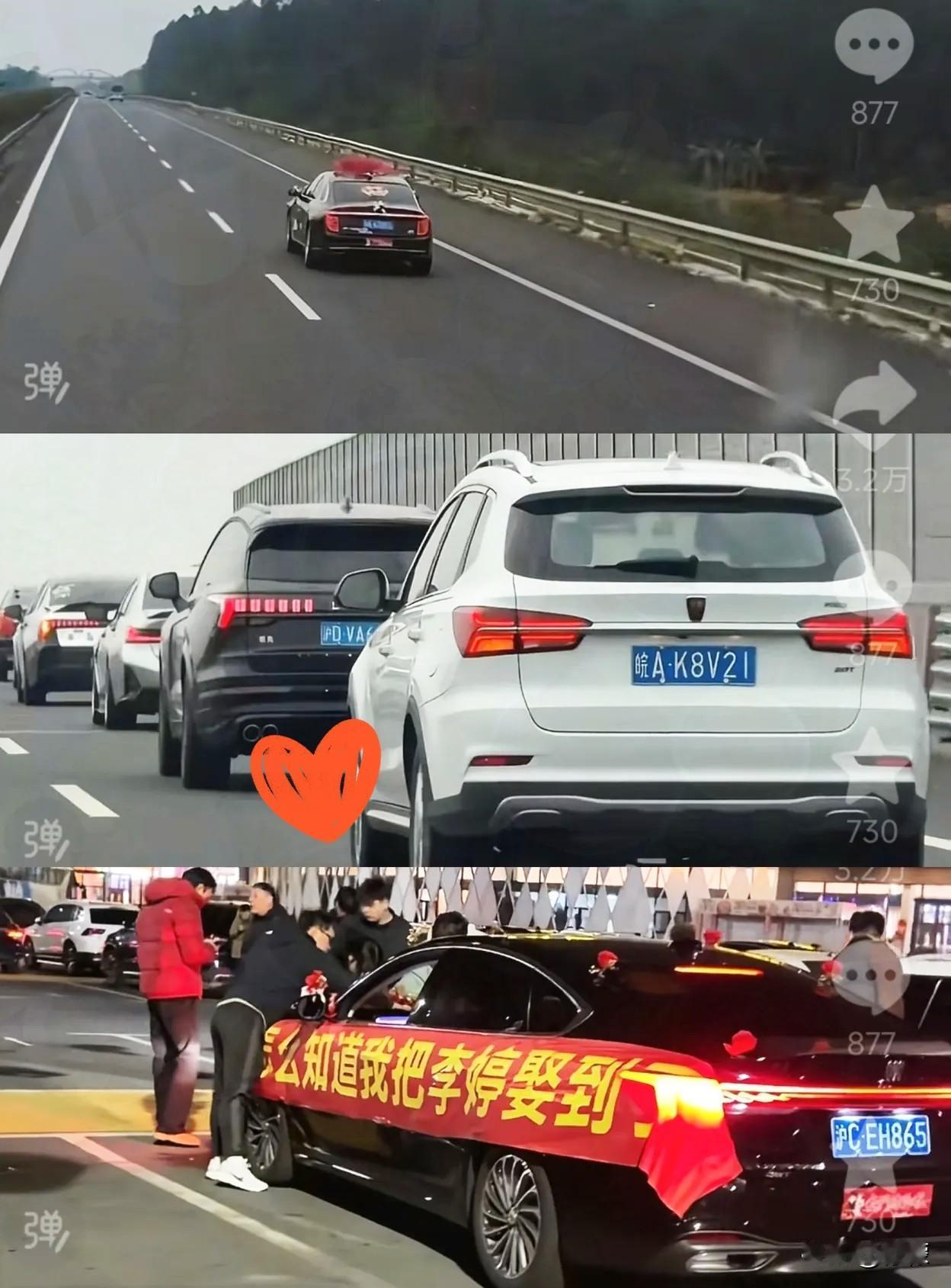 那个叫李婷的新娘找到了! 原本只是没人祝福的孤独远嫁, 结果在高速上被一群陌生车辆送嫁,一直跟到了服务区,新郎和新娘下车给大家送喜糖,感谢他们的祝福和相送。 刷到这段视频时,我正蹲在菜市场挑辣椒,手机音量没关,旁边的阿姨听见了,凑过来看:“这姑娘命好啊,陌生人都能给她凑个热闹。”屏幕里,李婷穿着红裙子,手里捧着喜糖盒,给每辆车的司机鞠躬,脸上的笑比身上的红裙子还艳,眼里却闪着光,像是有泪没掉下来。 后来才知道,李婷家在南方,新郎家在北方,隔着上千公里。她爸妈不赞成这门亲事,说“太远了,受委屈没人帮你”,闹到最后,婚礼当天家里一个人都没来。她坐在婚车里,看着窗外往后退的树,心里空落落的,跟新郎说“这辈子就结这一次婚,连个送亲的都没有”,说着说着就哭了。 婚车刚上高速没多久,后面就跟了辆白色轿车。司机是个大姐,摇下车窗冲她笑,比了个“恭喜”的手势。李婷愣了下,也挥手回了个笑。没过多久,旁边车道的车也慢下来,有人举着手机对着她拍,还有人打开双闪,一路跟着。到后来,居然凑了十几辆车,排着队跟在婚车后面,像支临时凑起来的送亲队伍。 到服务区休息时,那些车也跟着停了下来。新郎拉着李婷下去道谢,才知道带头的大姐是跑长途的货车司机,说“看这姑娘穿着婚纱,车后面贴着‘新婚快乐’,猜着是远嫁,怪不容易的,就想跟一段,让她热闹点”。另一个开SUV的大哥说,他闺女去年也远嫁了,看着李婷就想起自家孩子,“想着能给她添点喜气是点”。 李婷后来在视频里说,当时手里的喜糖都发完了,有人从自己车上拿了苹果塞给她,说“平平安安”;还有个阿姨把脖子上的红围巾摘下来,给她围上,说“红的喜庆”。那些素不相识的人,没说什么漂亮话,可做的事比任何祝福都实在。 小区里的张奶奶看完视频抹眼泪:“远嫁的姑娘苦啊,我年轻时候也是从乡下嫁到城里,头三年没回过家,受了委屈只能自己扛。要是当年也有人这么给我添点喜气,说不定能少哭好几回。”她这话戳中了不少人,远嫁最让人怕的不是路远,是心里的孤单——离开了熟悉的人和地,连个能说贴心话的都没有,陌生人这点善意,就像寒冬里的一点火星,能暖好久。 有人说这是“作秀”,可谁会为了作秀,在高速上跟车几十公里?那些司机里,有赶时间送货的,有带着全家旅游的,耽误自己的路,就为了给个陌生新娘添点喜气,图啥?图的不过是心里那点热乎气——知道这世上有人不容易,能帮一把是一把,哪怕只是陪一段路,递颗糖。 李婷的婚礼视频下面,好多远嫁的姑娘留言。有人说“看哭了,想起我结婚那天,火车上邻座阿姨给我剥了个橘子”;有人说“现在在婆家过得挺好,可每次想起刚嫁过来的日子,还是觉得鼻子酸”。这些留言里,没有抱怨,更多的是感激——感激那些不经意的善意,让孤单的日子里多了点光。 其实人这一辈子,谁还没遇见过难的时候?可能是搬家时没人搭把手,可能是生病时没人递杯水,这时候哪怕陌生人给个笑脸,说句宽心话,都能让人觉得“这日子还能往下过”。就像李婷遇到的这些司机,他们没做什么惊天动地的事,可那一路的双闪,那几颗喜糖换来的苹果,比任何华丽的仪式都让人记牢。 现在李婷和新郎在北方定居了,她说打算把那些陌生人的联系方式存起来,过年时发个祝福,“等以后有机会,也给别人添点喜气”。这大概就是善意的样子——像蒲公英的种子,被风一吹,就落到别的地方,生根发芽,再开出新的花。 各位读者你们怎么看?欢迎在评论区讨论。