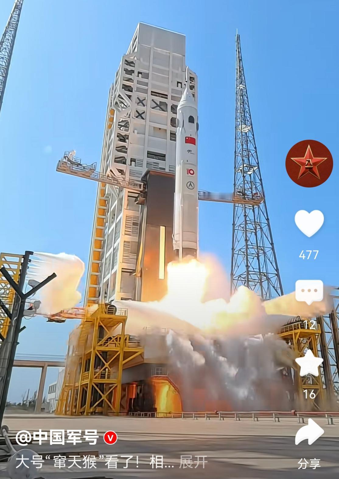 这个视角,还是第一次看到。 话说,点火之前的绿光,是什么呢?是不是跟打火机上的压电点火器一样呢? 另外,以前在发射塔下方的水池里,会提前注入大量的水,而这一次,取消了水池,水是从发射塔两边喷射出来的。 看上去效果也是很好。