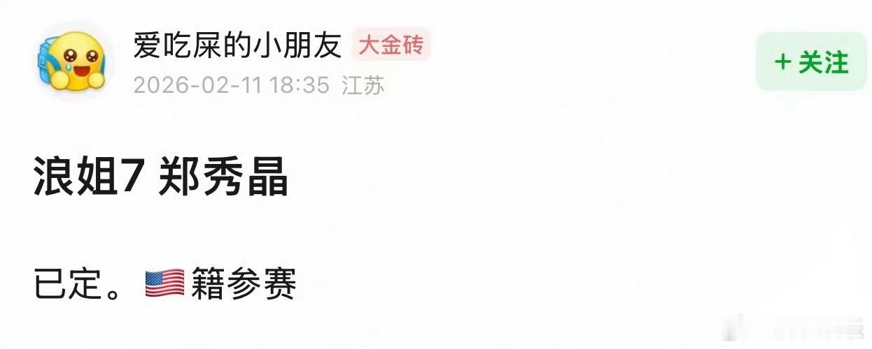 网传浪姐7有郑秀晶有网友爆料浪姐7已定郑秀晶,消息是真的话就很期待了