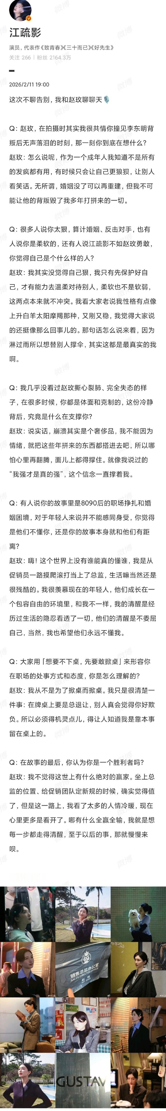 江疏影这次不聊告别 《夜色正浓》江疏影对话式收官文真的是非常的有意义了,而且这次不聊告别,聊聊真正的女性的成长和精神的内核 江疏影对话式收官文
