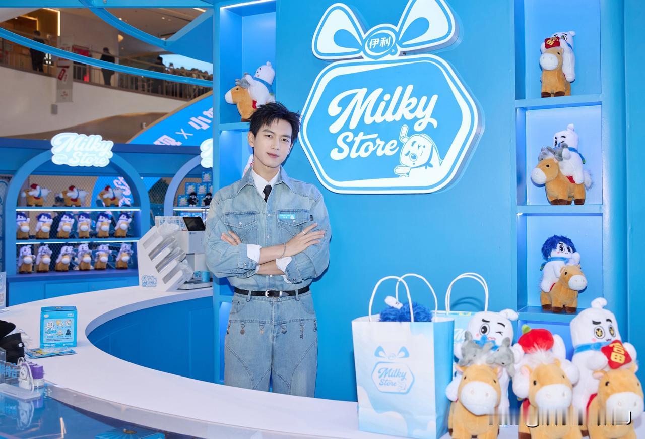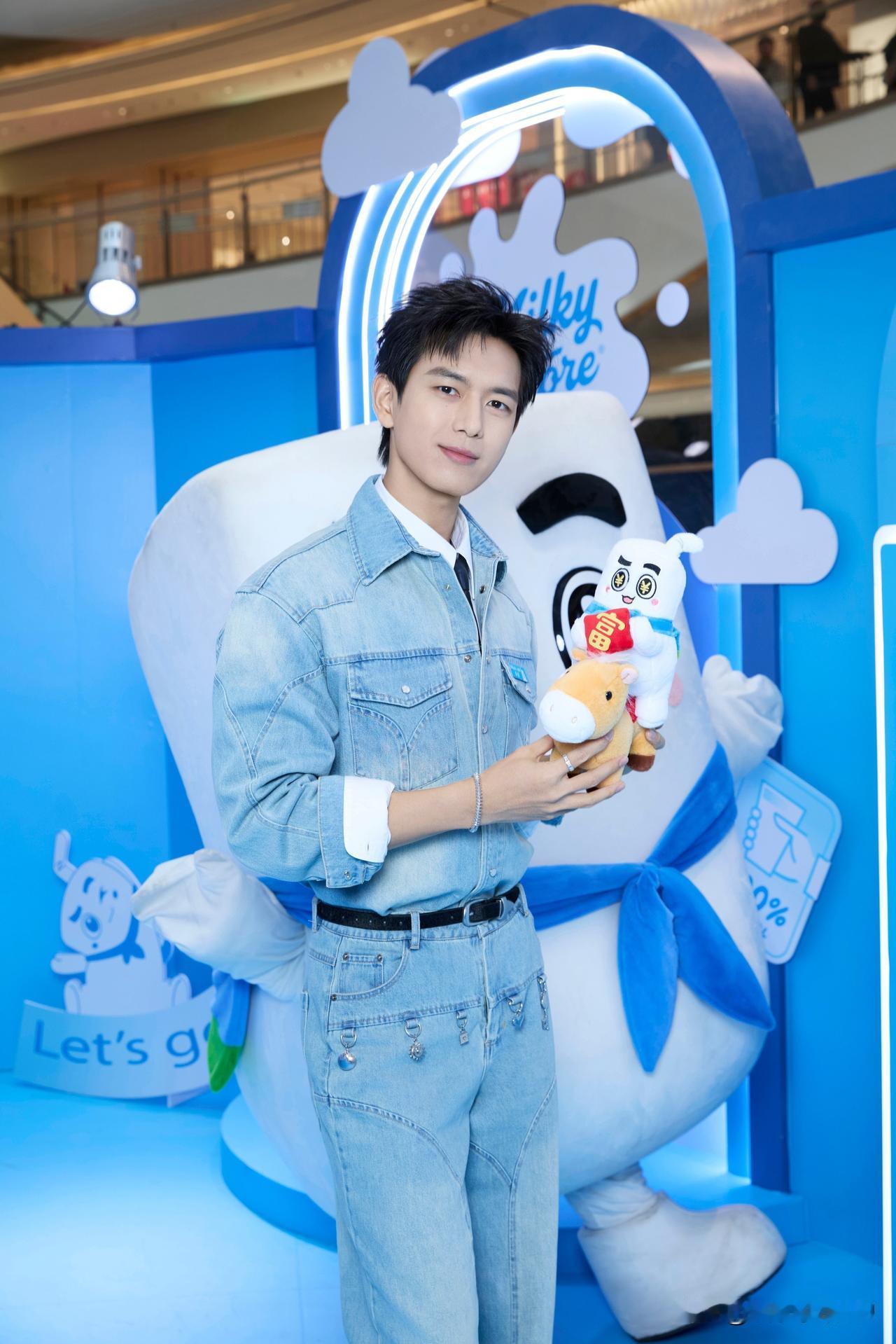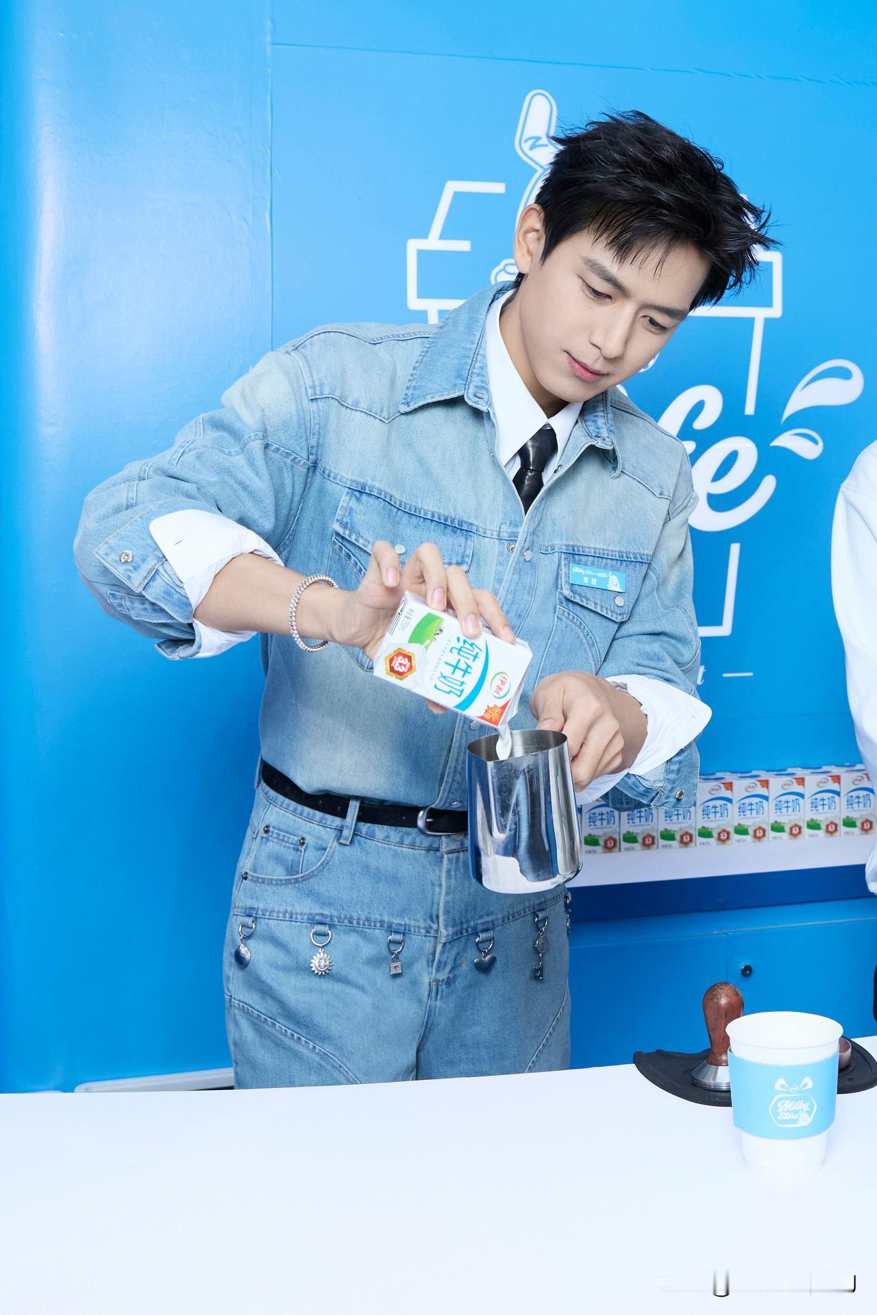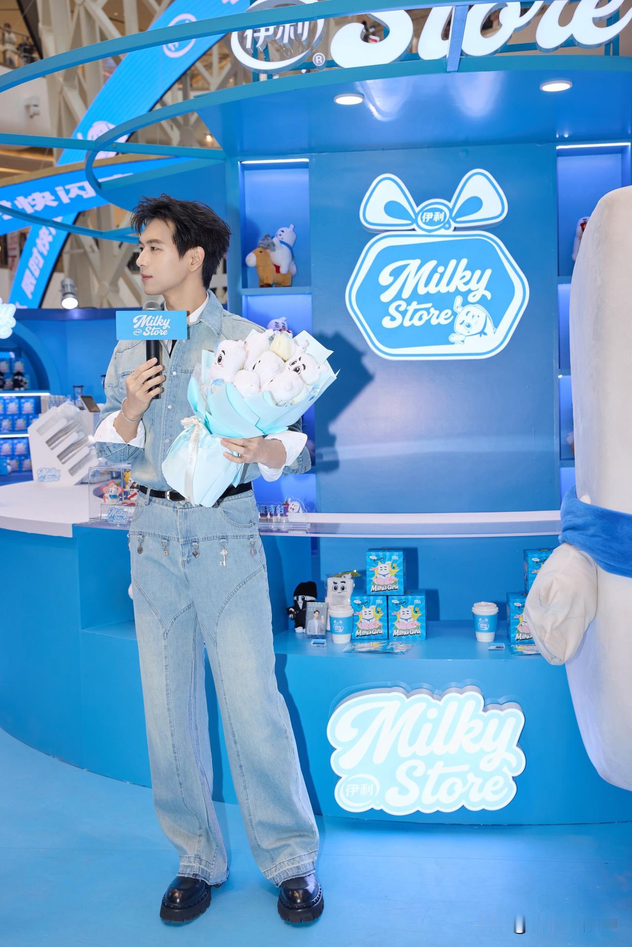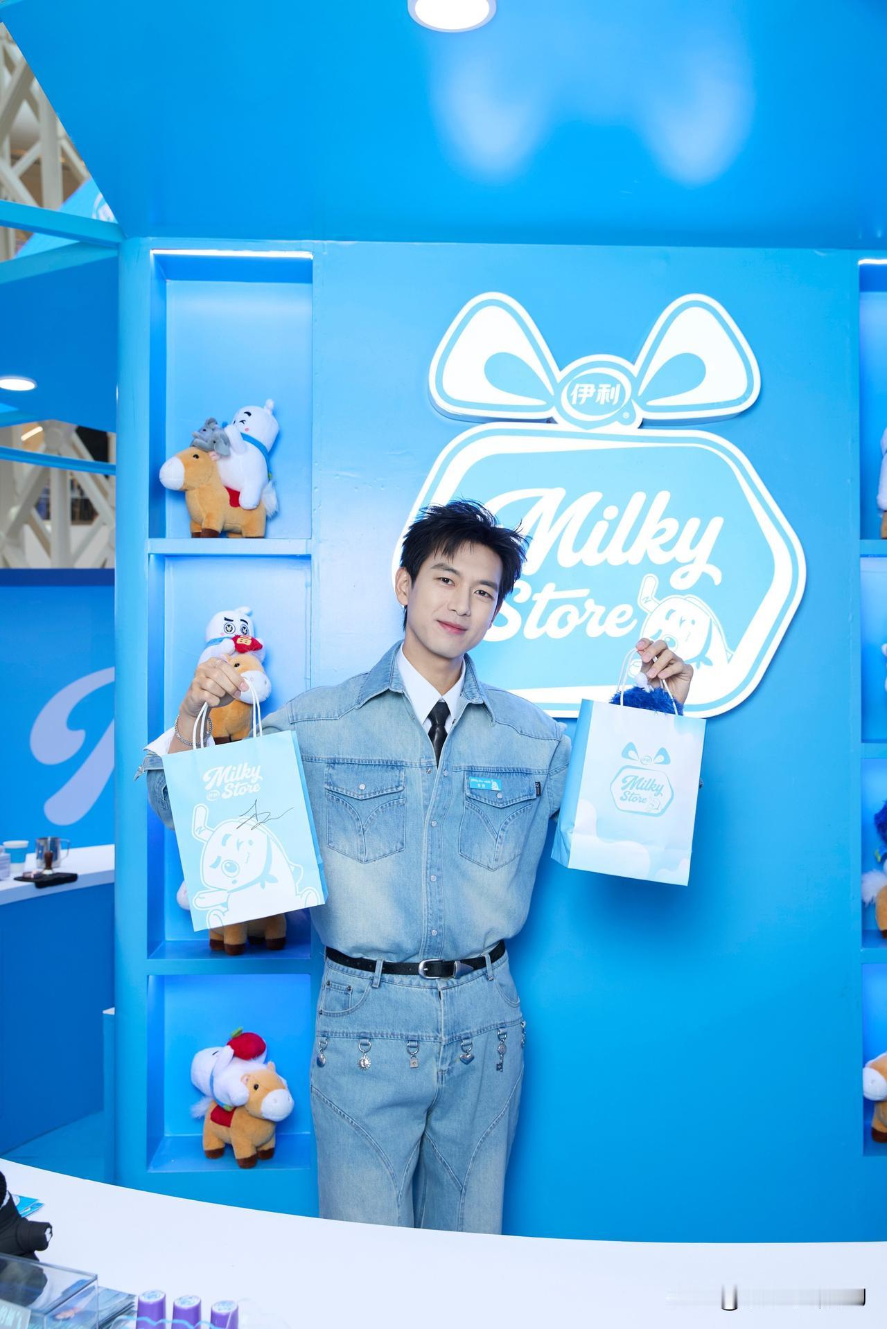 简直被身穿牛仔套装的伊利品牌代言人李现迷得不要不要的。