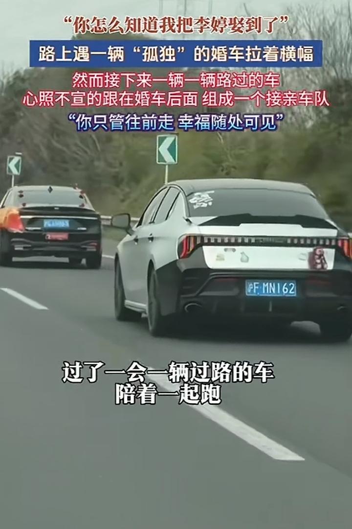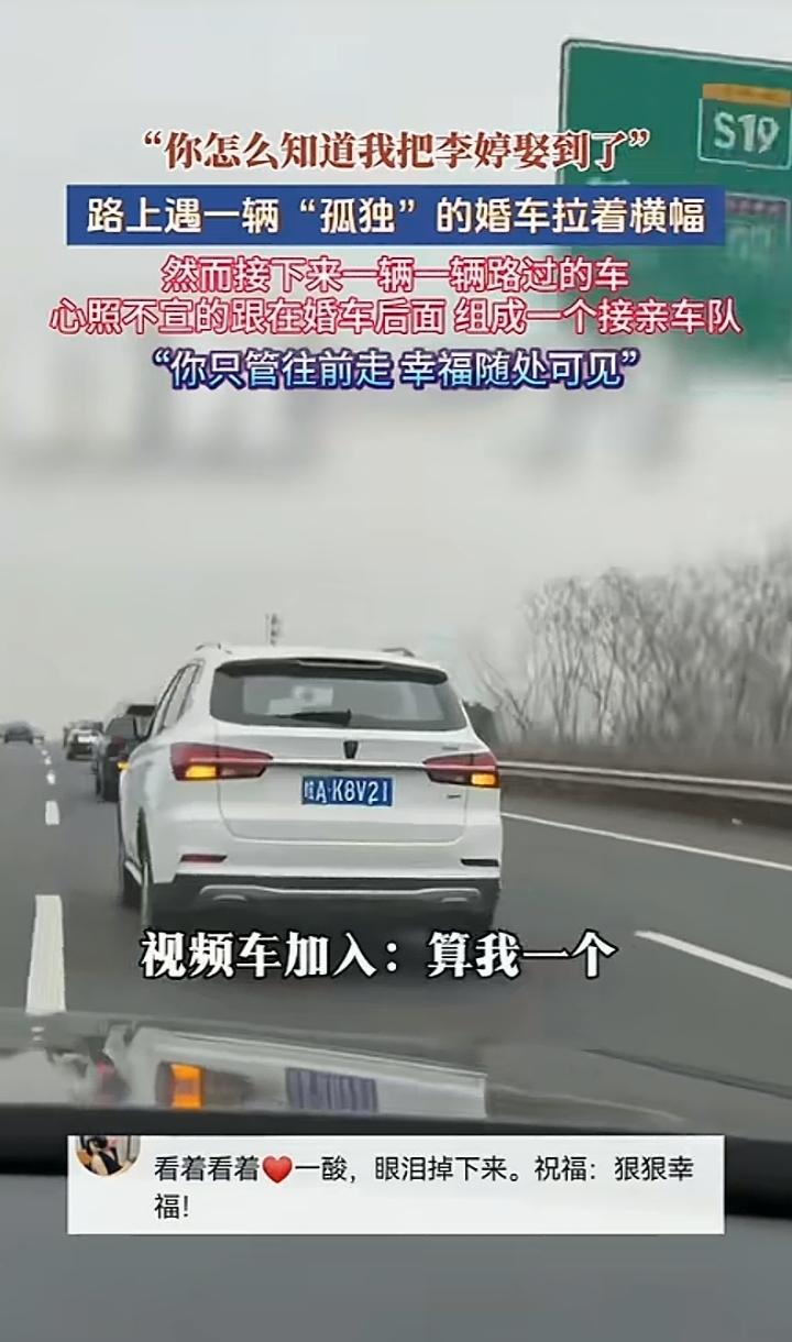 高速上的这一幕,看哭了无数人。 一辆贴着“你怎么知道我把李婷娶到了”的婚车,独自驶向幸福。 没有浩浩荡荡的车队,却在不经意间,收获了最盛大的祝福。 路过的车主们心照不宣,纷纷加入队伍。“算我一个”,简单的四个字,汇成了最温暖的迎亲车队。 原来幸福从不需要刻意炫耀,陌生人的善意,就是最好的彩礼。 愿这对新人,往后余生,皆如这般,被世界温柔以待,狠狠幸福! 社会百态 婚车