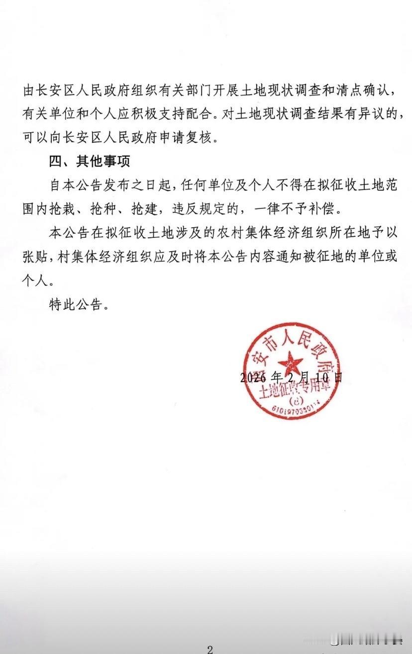 西安未来信息港核心区千亩征地启动!长安北雷、南雷村要大变样了! 西安城南又有大动作!2月10日,西安市发布土地征收预公告,长安区郭杜街道北雷村、南雷村约1022亩土地将迎来“华丽转身”,为“未来信息港”核心区建设腾空间。 这次征收的土地总面积约68.13公顷,其中耕地就有30多公顷,过去是村民们种粮种菜的农田和村落。未来,这里将彻底告别传统农业和村落形态,转型为集科创、生态、生活于一体的城市新核。 从规划图上看,这片区域的“含金量”拉满: 科创硬核:西电国家重点实验室、孵化科技城、智造工厂等将落地,为数字经济和硬科技发展提供核心支撑。 生活配套:体育馆、文化科技馆、人才服务中心、社区邻里中心同步布局,让产业发展和民生服务两不误。 生态颜值:艺术商业公园、科学绿廊、汉魏主题湿地公园穿插其中,科技感和自然感并存。 交通便利:香积大街、终南大道、西沣路等主干道贯穿,以及未来规划7号线、13号线等线路,未来出行更便捷。 公告也明确了关键节点:自发布之日起10个工作日内,长安区将组织土地现状调查和清点确认,村民们要积极配合;同时,征收范围内严禁抢栽抢种抢建,违规行为将不予补偿。 这次征收不仅是两个村子的蜕变,更是西安“未来信息港”从蓝图走向现实的重要一步。当农田变成科创高地,村落融入城市新核,长安区的发展能级也将迎来质的飞跃。 西安未来信息港 长安区 土地征收 城市发展