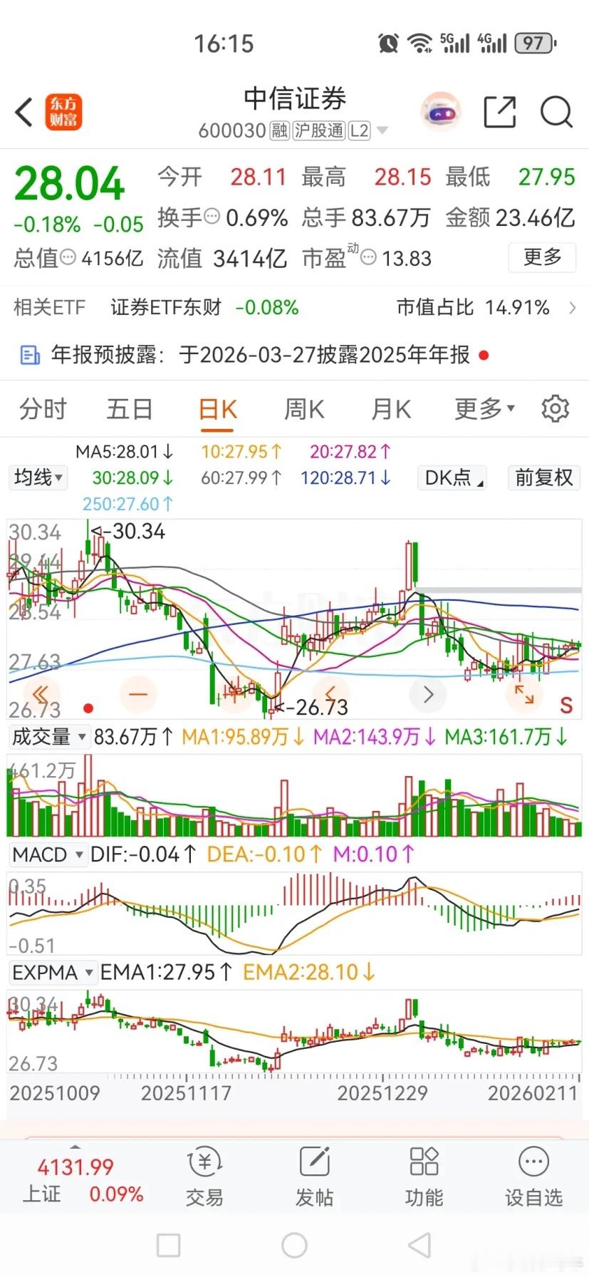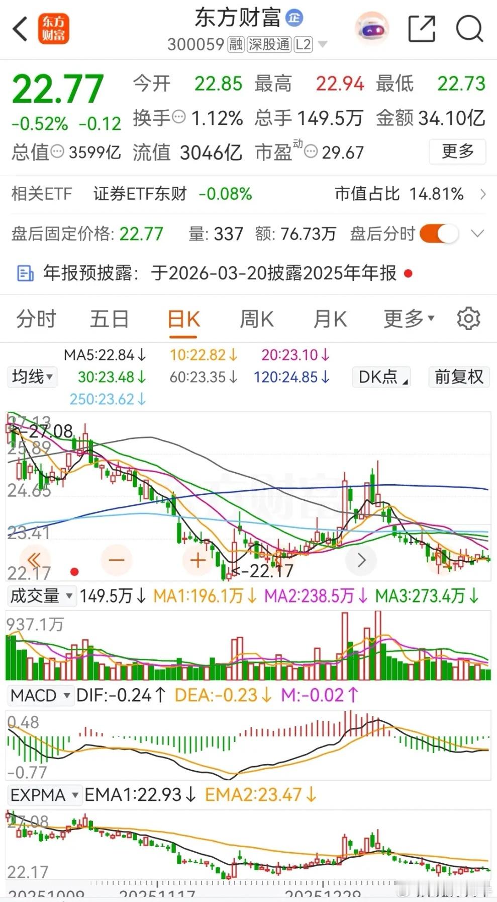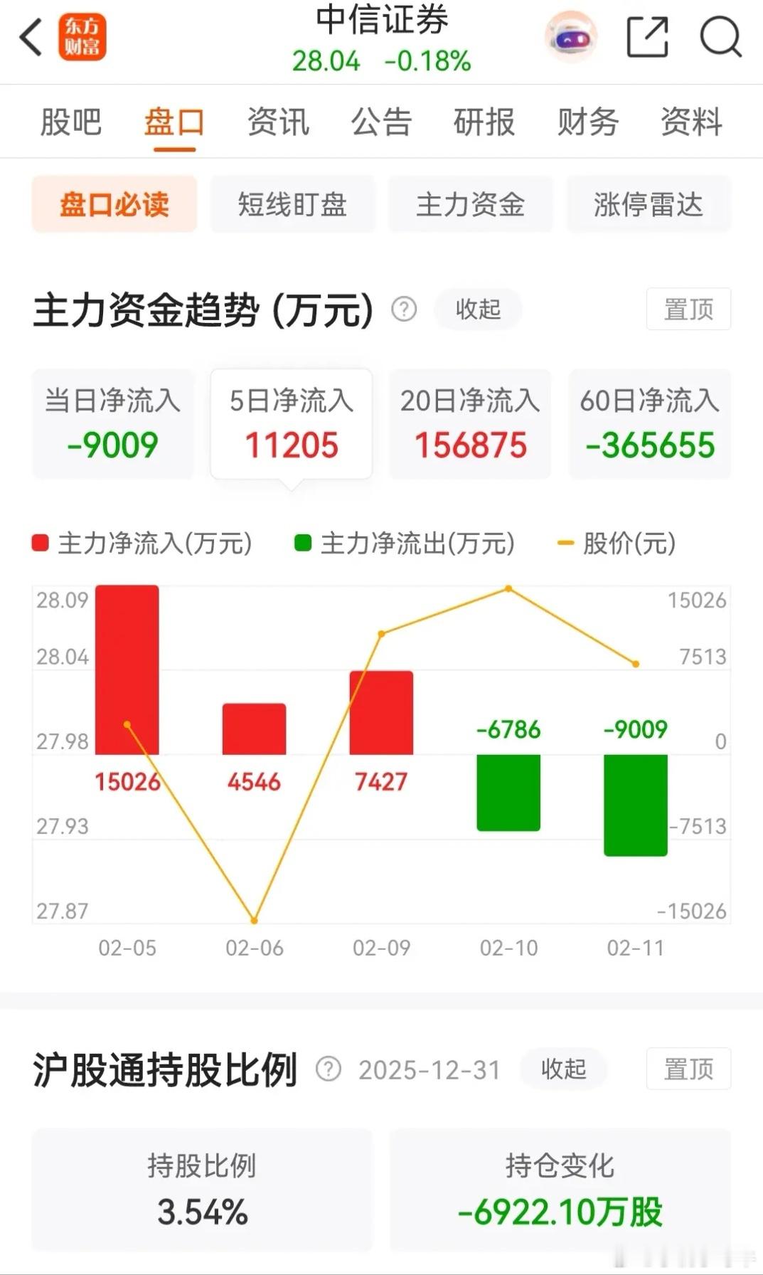 东方财富和中信证券连续两天被主力资金净卖出,今天均是绿盘报收。东方财富今天低开后