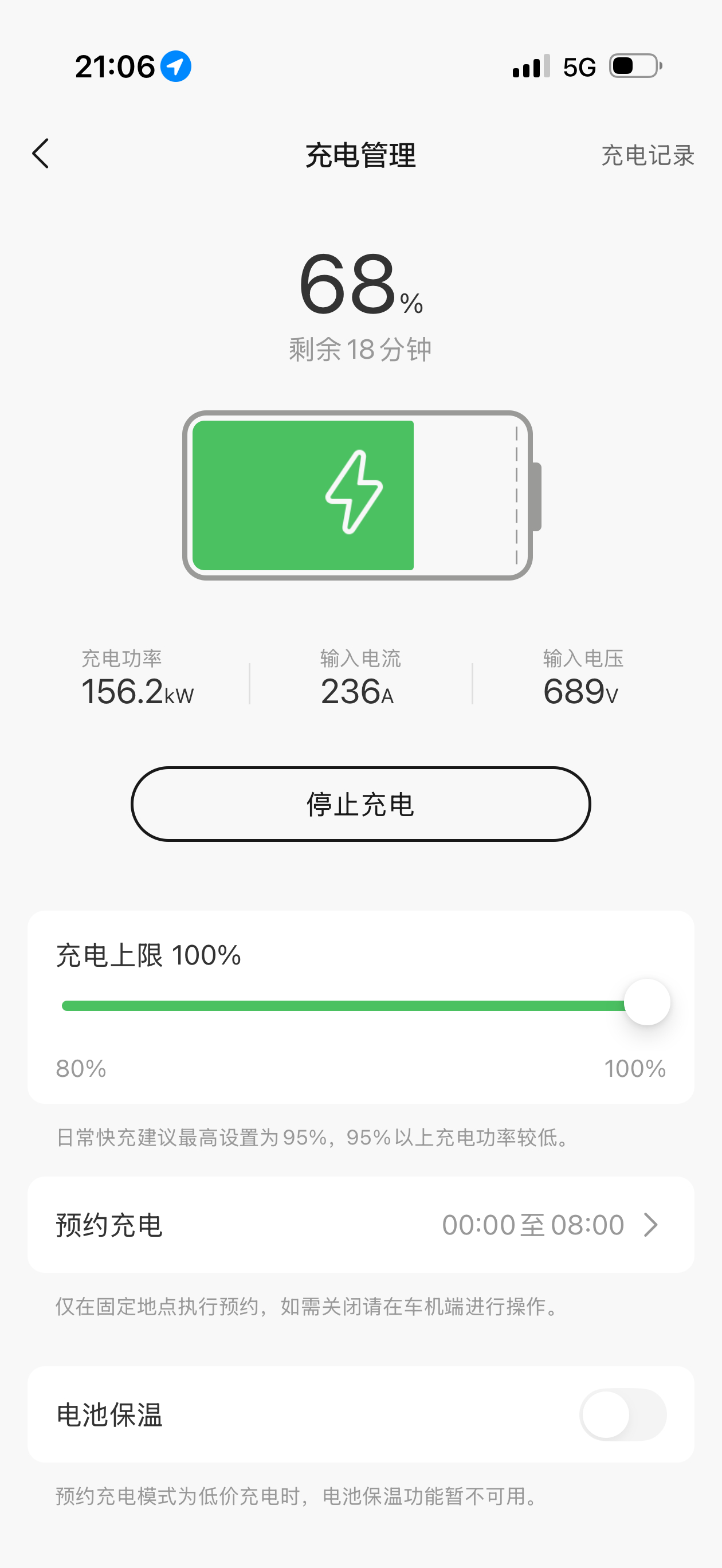 习惯了理想 5C 外面的快充真是不敢信,你看这个快充站,标称 480kw 够快吧,就我一辆车,实际速度呢,150kw。