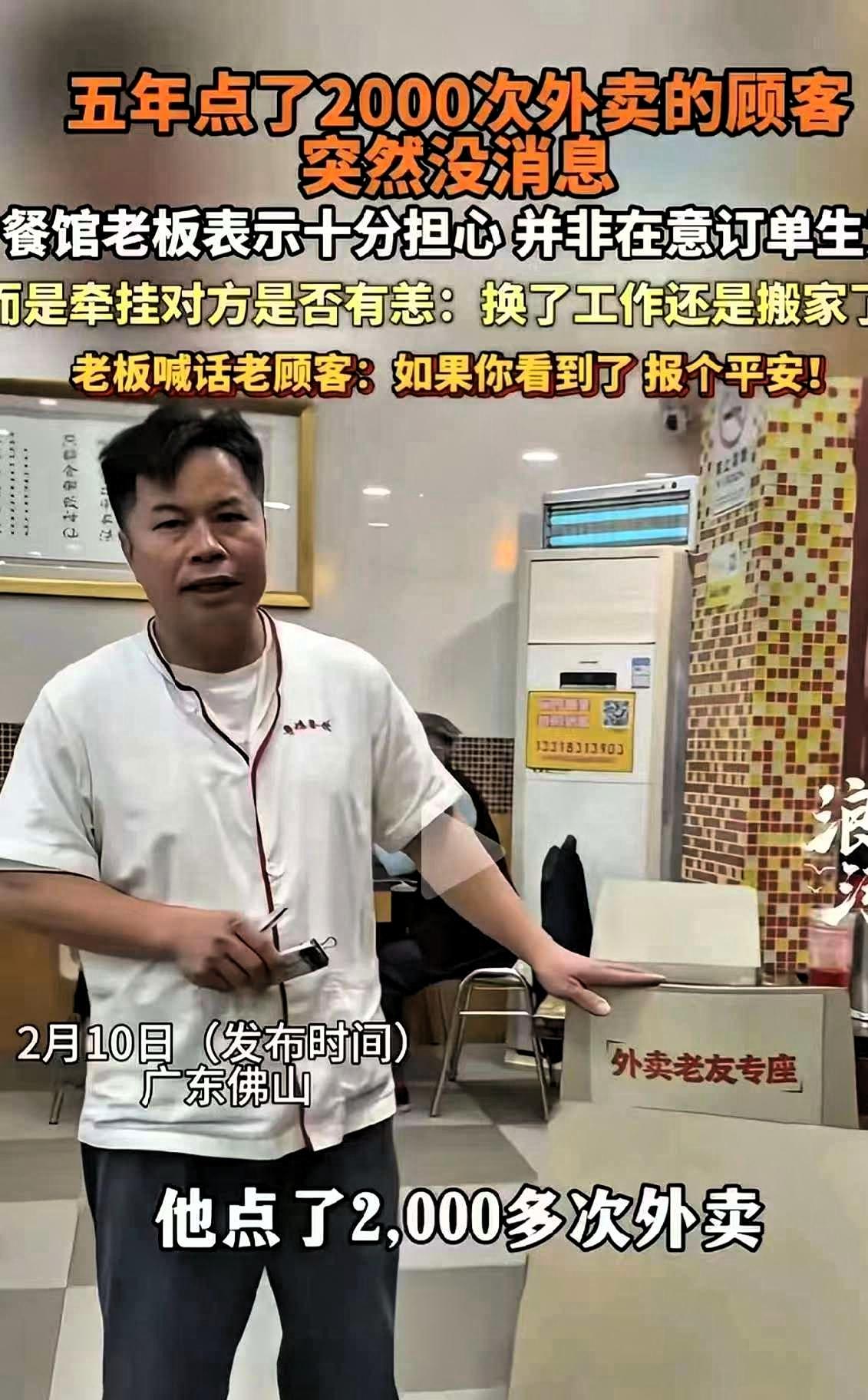 广东佛山,一男子开了家粤菜馆,有个顾客5年点了2000次外卖,突然一年多没了动静
