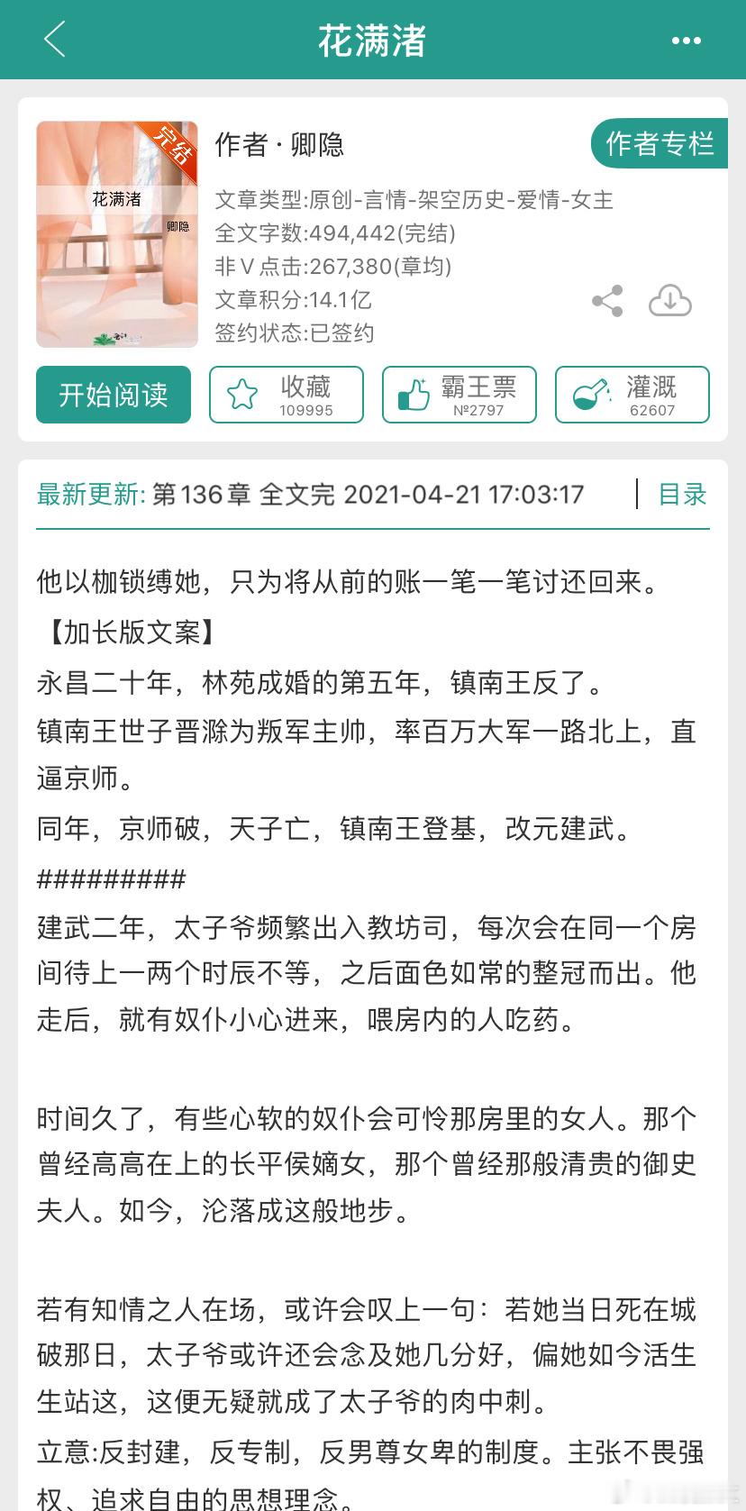 推文 【古言】《花满渚》by卿隐评分:4.7强取豪夺,高开疯走,有点癫哈哈,会上瘾