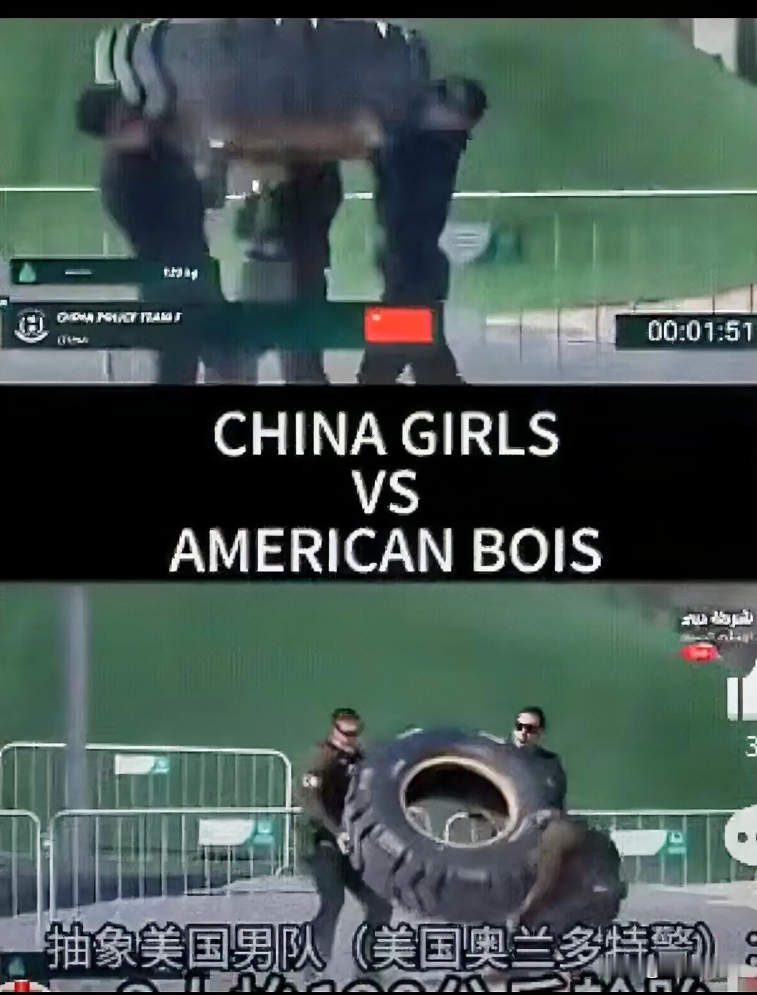外网传疯了? 川普都无语了! 这美国特警太丢脸了,丢到世界去了,三人抬120kg轮胎比赛跑,竟然被中国女子特警远远的甩在身后。关键是什么?关键是中国女子特警三个人一下子就把轮胎举起来了。而美国特警举起轮胎时差点被轮胎压到下面去了。 --- 你光盯着那个差点被轮胎压跪下的美国大汉看热闹,其实把镜头拉远了,这哪是什么体育比赛,这根本就是两国特警训练体系的照妖镜。 第七届阿联酋特警挑战赛,48个国家、114支顶级队伍,那是真刀真枪的特警界世界杯 。美国奥兰多男队,人高马大,往那一站气场两米八。结果呢?120公斤的轮胎刚离地十公分,重心直接歪到姥姥家,一个大老爷们当场单膝跪地,轮胎脱手差点砸脚——这场面别说川普无语,我隔着屏幕都替他们臊得慌 。 你仔细品那个“跪”的慢动作。他不是没力气,是三个人各玩各的。一个想硬拉,一个想上肩,发力点差半拍,重心全乱套。咱们四川女队呢?三个姑娘下蹲、抓点、同时爆起,轮胎就像粘在肩膀上,步子稳得跟阅兵似的 。这差的是肌肉吗?差的是那颗脑子里有没有队友。 别扯什么美国男队没认真。去看看他们往年的参赛记录,纽约警局、奥兰多特警,年年被各国队伍当背景板,搞笑集锦都能剪出半小时 。这不是轻敌,这是系统性傲慢后遗症——总觉得凭块头就能吃饭,却连三个人同时发力的呼吸都调不到一块去。 咱四川这帮妹子,平均体重一百出头,训练标准跟男队一模一样。一个翻障碍的动作,拆开了练两周,练到闭着眼肌肉都能记住搭档的重心偏移 。什么叫专业?专业就是把“配合”练成条件反射,而不是比赛现场现找默契。 首日火力突击项目,四川女队1分53秒零失误,不光是女子组冠军,总排名把85支男队踩在身后 。这不是爆冷,这是把训练场当战场、把队友当后背的人,用汗珠子一颗颗砸出来的硬仗。 你再看美国队那个跪地的动作。但凡平时训练多模拟几次实战压力下的协同,不至于在全世界镜头前演一出“三个和尚没水喝”的黑色幽默。更扎心的是——这还不是美国最精锐部队,但他们派出来的,就是自认为能打的。 有人说这是炒作,拿性别说事没意思。我想说,恰恰是性别把这层遮羞布撕了个干净。当力量不占绝对优势的时候,你的战术、你的协同、你的意志,才会像X光一样透进骨头里。 四川女队提前一周到迪拜适应沙地高温,一遍遍磨那个“平平稳稳的慢顺快” 。美国男队呢?进场热身肉眼可见的松散,肌肉倒是鼓得跟大力水手似的,可惜三个人六条腿,愣是没走出同一种节奏。 这场面让我想起军运会。有些队伍是来赢比赛的,有些队伍是来维护“老子天下第一”这个人设的。人设这玩意儿,最怕硬碰硬。 轮胎脱手那一刻,跪下去的不是那个特警,是美式执法神话里那层虚胖的滤镜。而咱们三个姑娘扛着轮胎往前冲的背影,告诉全世界什么叫——你大爷永远是你大爷,跟你是不是女的没关系。 各位读者你们怎么看?欢迎在评论区讨论。迪拜特警挑战赛