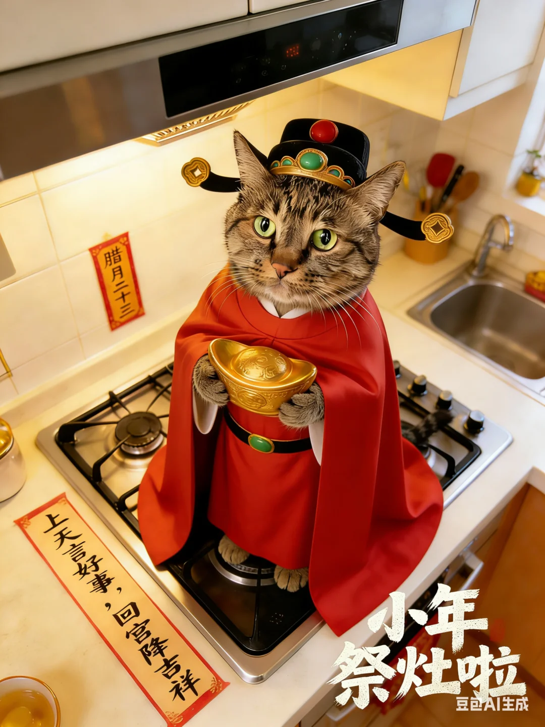 二十三,糖瓜粘,过了今天就是年。 快给毛孩子们安排上灶王爷和财神Cos吧~