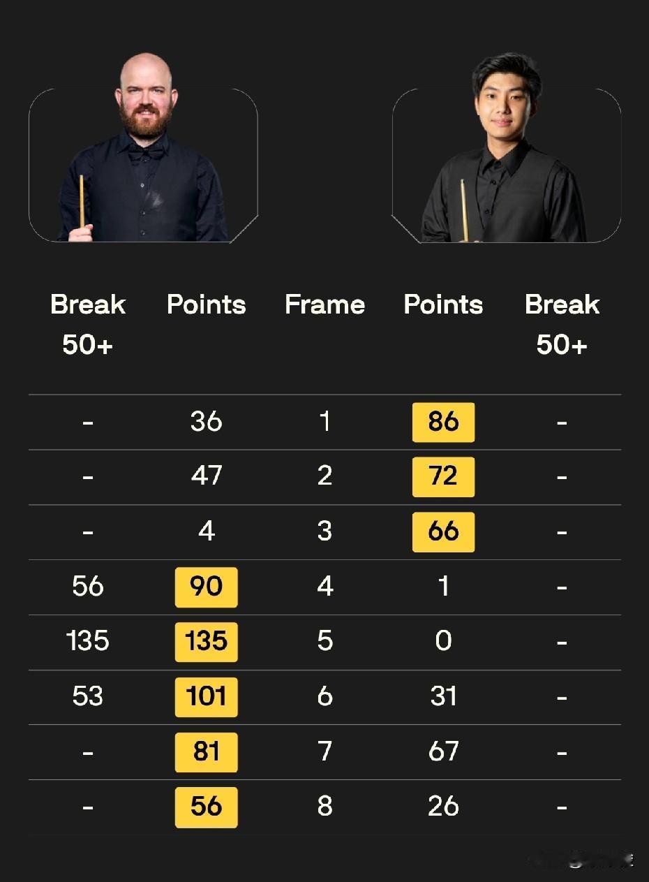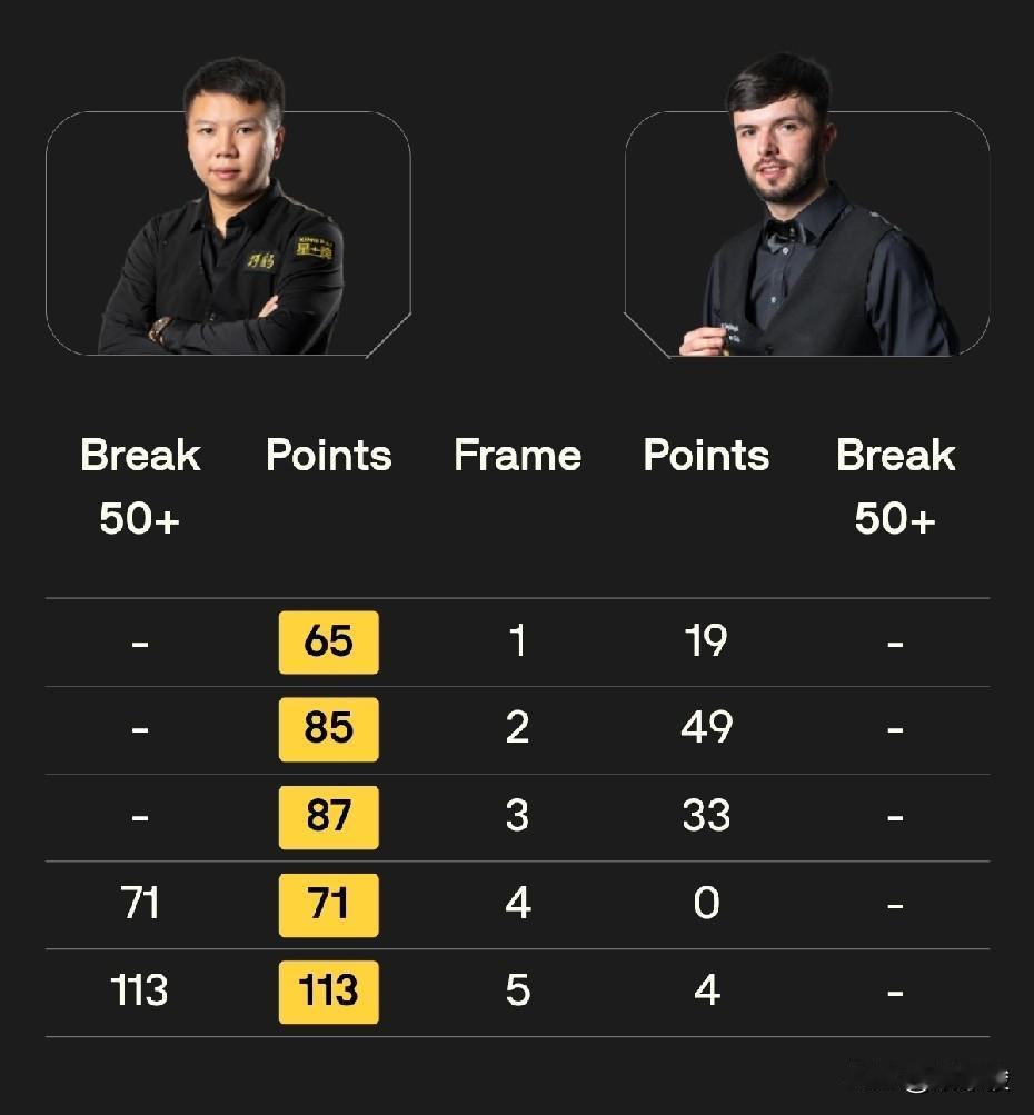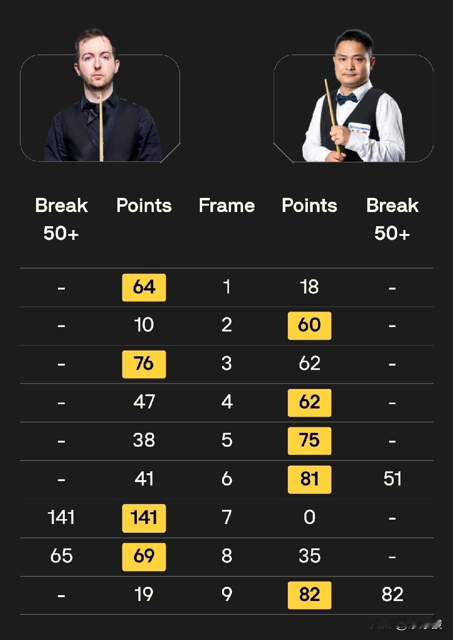 世界公开赛资格赛战报,周跃龙5-0零封埃默里,许医尘5-4绝杀唐纳森,晋级正赛;王雨晨3-0领先罗比·威廉姆斯五连鞭;范争一2-5不敌勒克莱尔、黄佳浩1-5负于舒尔蒂;22点30分还有3名中国出战。 周跃龙今天状态很好,5-0零封埃默里。埃默里是中国球员比较难对付的选手,今天跟之前相比差太多,估计还是被周跃龙压制住了。不过零封的结果还是有点出人意料。 范争一2-5惨败给勒克莱尔,算不上爆冷,勒克莱尔最近状态非常好。 黄佳浩1-5输给舒尔蒂很正常,也是实力所致。黄佳浩输球后降级已是大概率事件。 王雨晨3-5负于罗比·威廉姆斯,王雨晨一度3-0领先,被对手五连鞭。王雨晨今天后半段状态下滑厉害,准度不行,走位很差。 刚刚结束的一场中国球员的比赛,“一年级生”许医尘5-4绝杀唐纳森,晋级正赛。 22点30分还有3场中国球员的比赛,具体对阵如下: 蓝裕豪迎战瓦菲, 袁思俊对阵格雷斯, 龙泽煌对阵格雷厄姆。