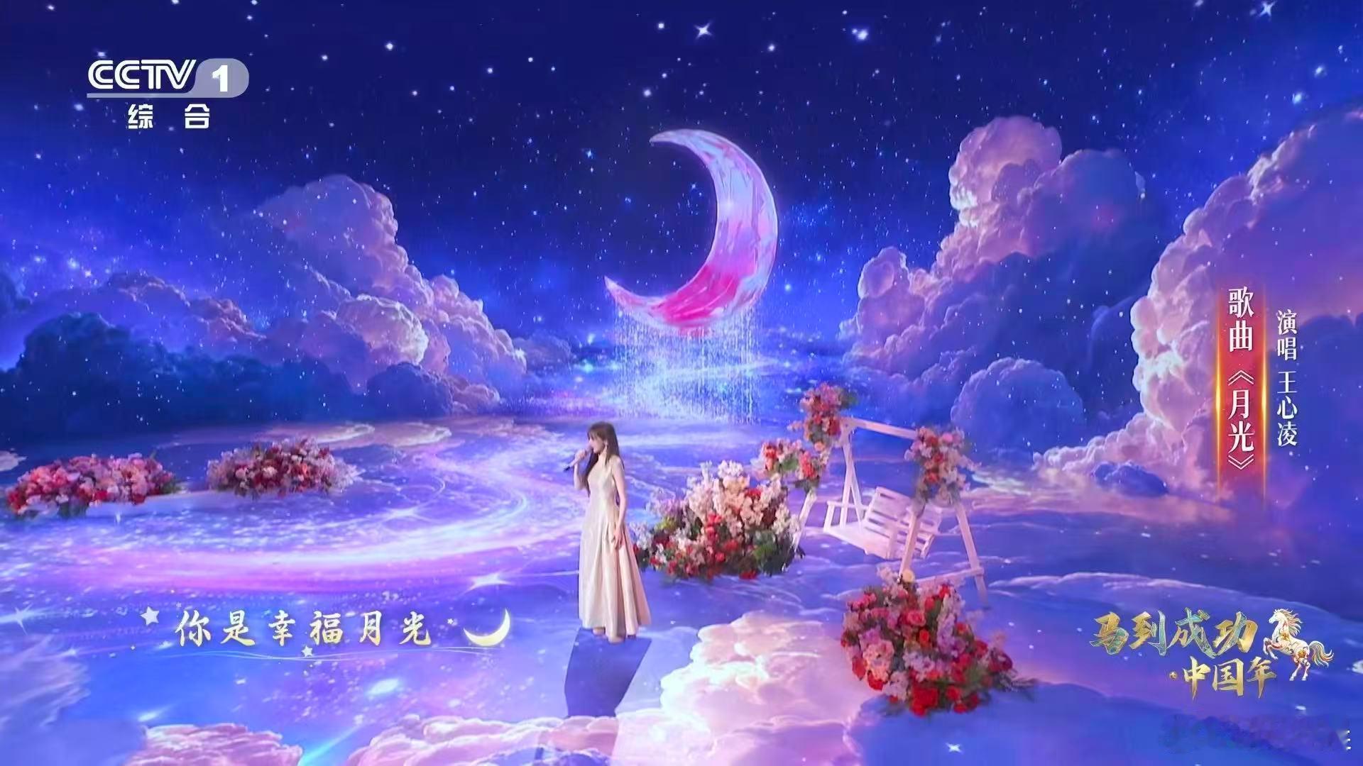 王心凌鲜花弯月舞台超梦幻王心凌再唱月光 她说这是唱给思念的歌。舞台上的鲜花是绽放的牵挂,弯月是未满的等待。王心凌的声音还是那么温柔,轻轻托起每一颗想回家却还在路上的心。月光所至,皆是团圆。