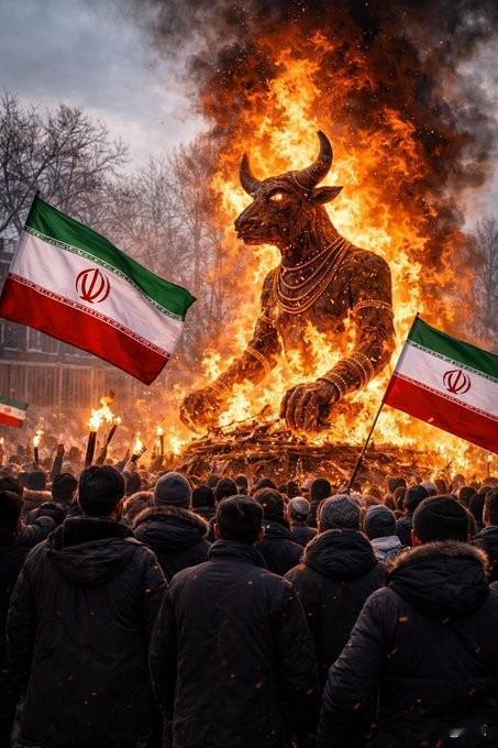 伊朗民众在纪念伊斯兰革命周年活动期间,焚烧“巴力”雕像。神像旁边还贴有特朗普、内塔尼亚胡、美国国旗照片,被一并焚烧。 据传,“巴力”是古代迦南神话中的神,在现代叙事中被代指撒旦崇拜、精英腐败。是以色列人、犹太复国主义以及精英犯罪的人所信奉的神。其信徒们向他献祭儿童。 伊朗民众此举,显示出他们高涨的反西方,反犹太复国主义的情绪!