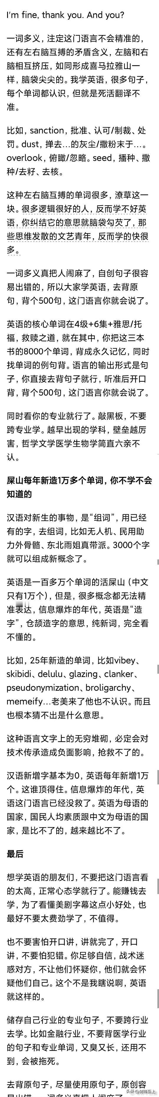 中国之所以能在短短几十年完成人类历史上最庞大最复杂的工业化进程 除了人种文化制度优势外,还有一个就是语言文化优势 汉语的优势让绝大多数中国人能够快速成为熟练工人和工程师,这是英语完全不能相提并论的