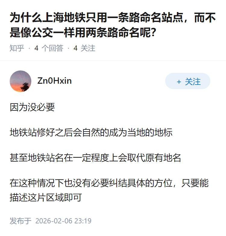 为什么上海地铁只用一条路命名站点,而不是像公交一样用两条路命名呢?