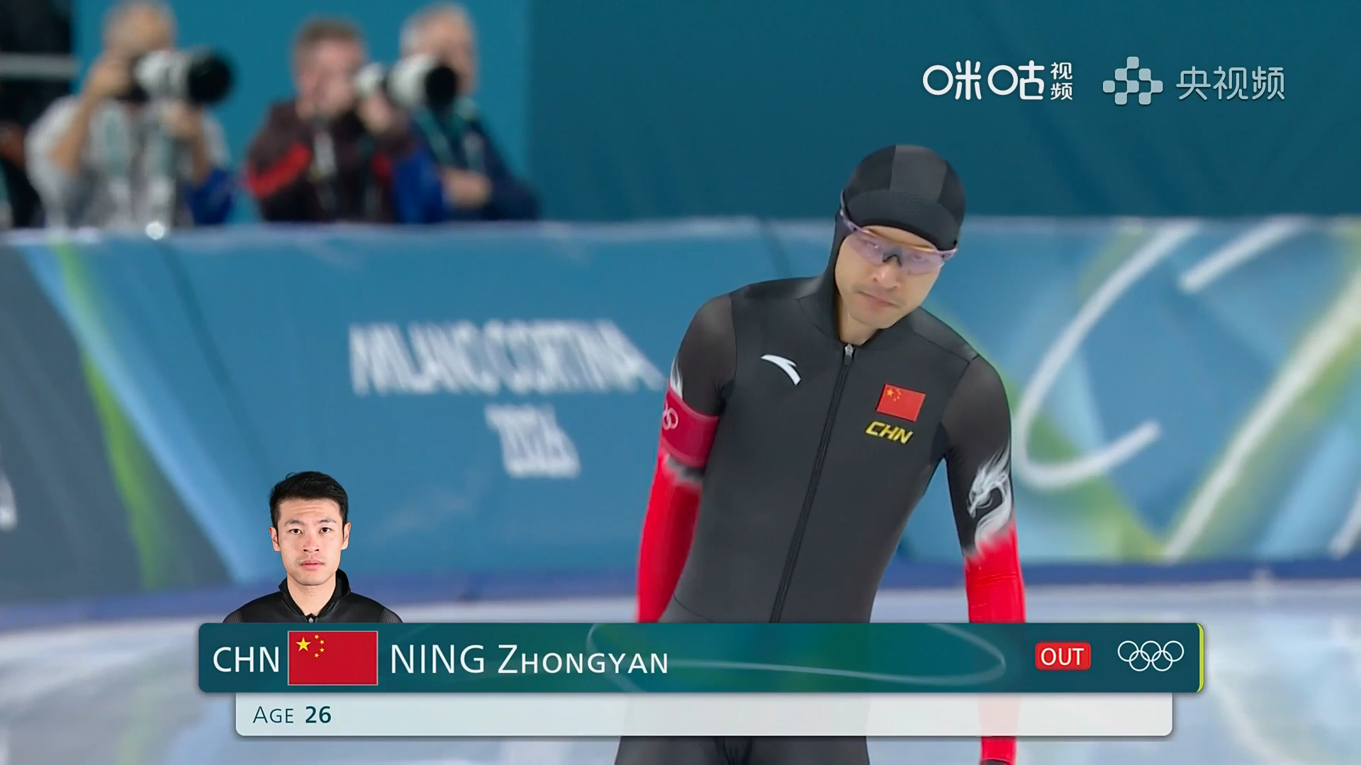 米兰冬奥会速度滑冰男子1000米决赛,宁忠岩滑出1分07秒34,暂列第一!看看后面三组的成绩。